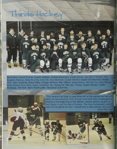 "This season has been a great time with all the games we had ar I skills we have learned. Even though most kids were challenged b\ skating at the beginning of the season, people quickly caught up I and began to get the idea of hockey. The most memorable event I was the first game we won. I would love to play hockey next year| -Jong Woo Hf