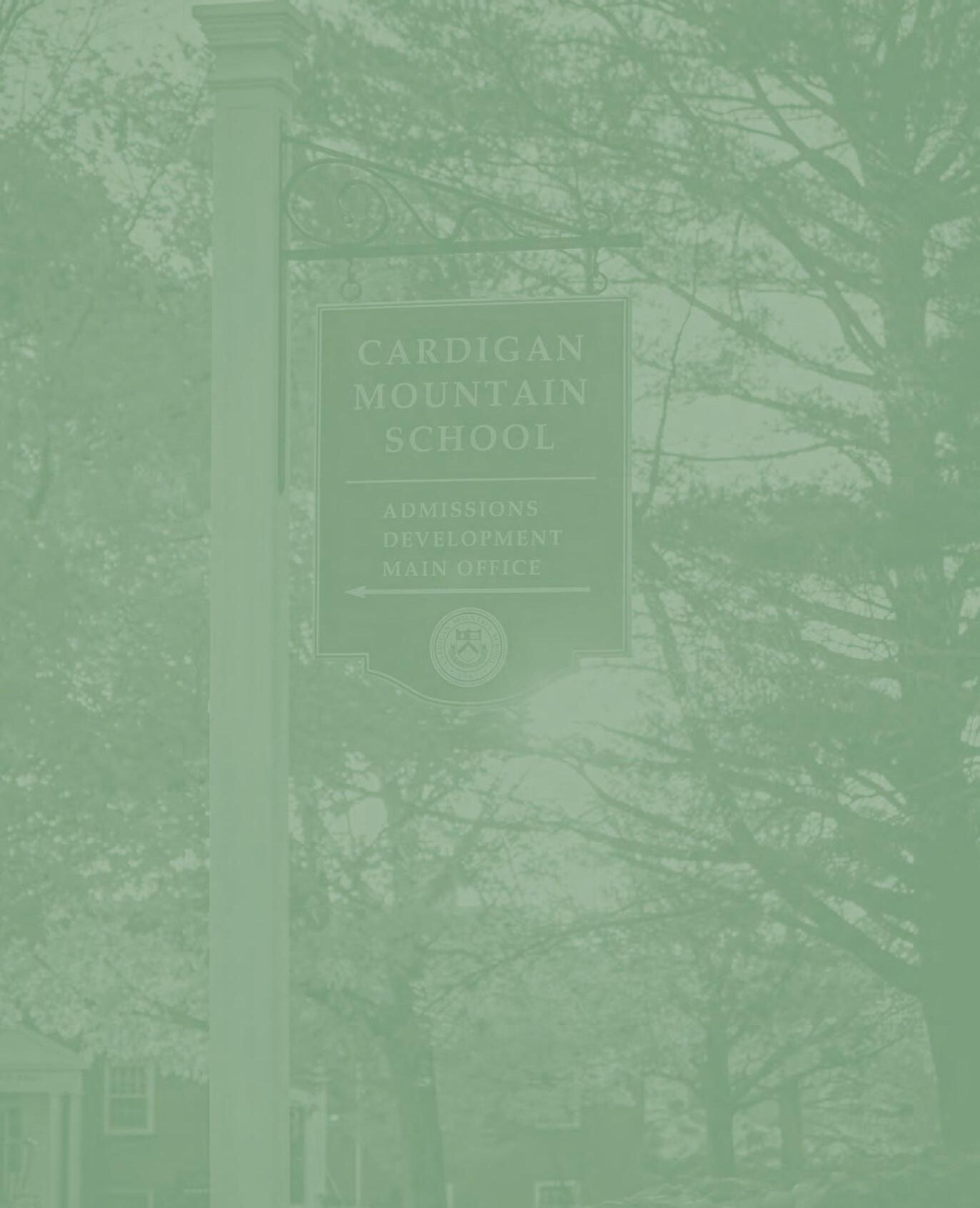 editorial office: Cardigan Mountain School, Alumni Drive, Canaan, NH ; communications@cardigan.org. editors: Director of Communications and Marketing Chris Adams; Assistant Director of Communications Emily Magnus. guest contributors: Corey Lawson, Nick Nowak, Jer Shipman ’, and Judith Solberg. photographers: Chris Adams, Martin Grant, Ken Hamilton, Kyla Joslin, and Emily Magnus. The Cardigan Chronicle is published bi-annually by the Communications Office for alumni, parents, and friends of the school. The magazine is printed by R.C. Brayshaw and Company on sustainably produced, chain-of-custody stock certified to Forest Stewardship Council (fsc) standards.As a parent of two Cardigan alumni, I think my first real dive into the spiritual impact of a Cardigan education was when I sat in the balcony of the Chapel (perhaps the best vantage point in the house) as my prepubescent sixth-grade son Henry ’13 sang falsetto in the school choir during that year’s holiday service, seven years before I would become the head of school. I had watched him playing JV football in the pouring rain that autumn (like puppies wrestling); participated in parent-teacher conferences that left me feeling like my kid was truly known by