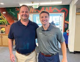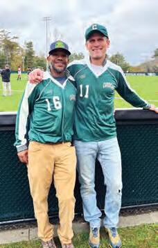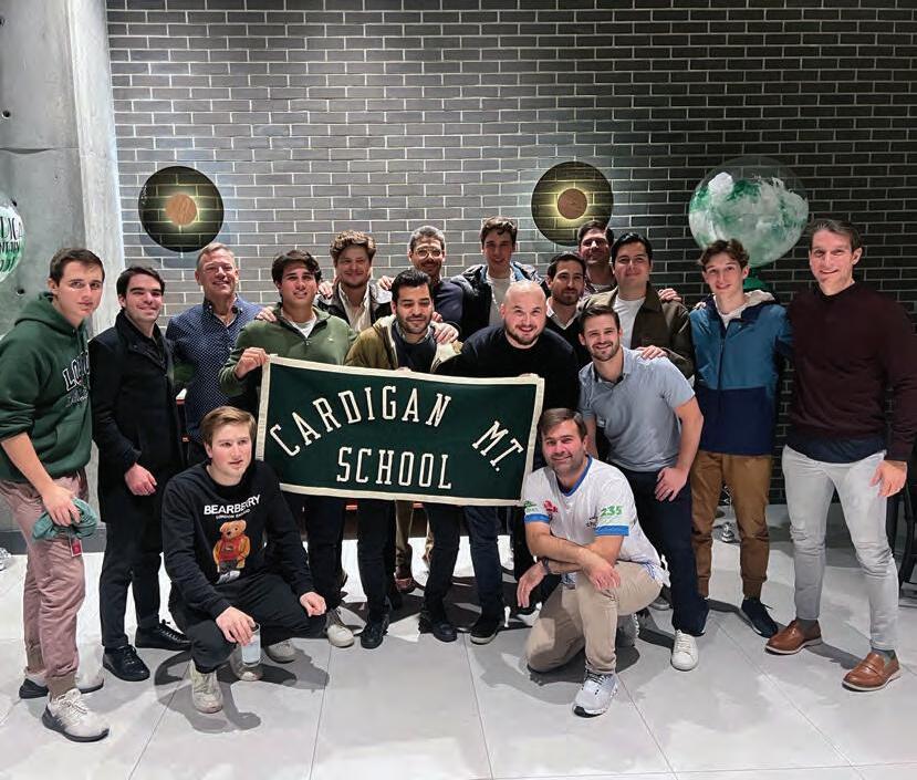 Golf Club in Devens, Massachusetts during the Cardigan summer golf outing in July—witnessed by Head of School Chris and Cynthia Day; 10: Ryan Coulter ’, who now lives in Salt Lake City, Utah, took a tour of New England to visit boarding schools with his daughter and made a stop at Cardigan, where he met current faculty Cam McCusker ’. Cam’s dad, former Head of School Dave McCusker ’, was Ryan’s hockey coach thirty years ago; 11: Classmates and teammates Chris Simons ’ and Andy Bay ’ reunited on Campbell Field in their original jerseys to cheer on the current Varsity Soccer Team on Eaglebrook Day; 12: Alex Strait ’ joined the Cardigan Summer Session faculty in and connected with fellow cms and Union College alumnus John D’Entremont ’; 13: Herbie Kent ’ and wife Fran welcomed their second child, a baby girl named Eloise; 14: Head of School Chris Day and trustee Mario Zambrano ’ with Ramonfaur brothers David ’ and Daniel ’; 15: Ski coach Doug Clark ran into Paul Pettengill ’ during a trip to Sunday River Resort in Maine this winter; 16: Director of Annual Giving and Alumni Relations Jeremiah Shipman ’, Mikal McCalmont ’, and Tommy Lindholm ’ reconnected on campus when Tommy dropped off his son Eetu ’ at new student registration; 17: Andrew Noel ’, AJ Noel ’, Bryce Terry ’, Conley Bohan ’, Will Rassier ’, Isaac Abbott ’, Treva Murphy ’, and Nate Watson ’ all worked alongside Varsity Hockey Head Coach Cam McCusker ’ during the Supersonic Danglers summer hockey camp at Cardigan