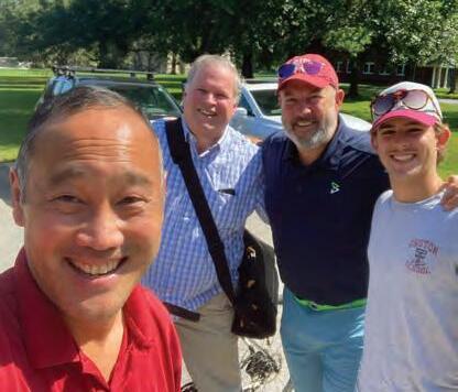 wife became Princess Peach,” he writes. The photos are from their annual fundraising gala; 10: classmates Mario Zambrano ’, Shawn Chippendale ’, and Joe Burnett ’ reconnected in Houston, Texas in November. Shawn is a photographer in Houston, and Mario is living in Austin; 11: Joe Burnett ’, Jer Shipman ’, and Trey Ragno ’ connected for breakfast in Houston, Texas. Trey is living in Corpus Christi with his wife and three children; 12: Archer Davenport ’, Cardigan mountain biking coach Gio Fassina, and Fountain Whitaker ’ at Cardigan’s annual mountain bike race on The Point; 13: Kris Langetieg met up with Harold Kim ’ on the St. Paul’s School campus; 14: Aidan Garron ’ visited campus with his partner and caught up with faculty members Alex Gray H’ and Pablo Rocha-Vazquez after the Lake Run this fall; 15: Summer Session faculty Bob Low caught up with Middlesex senior Jason Jiang ’ who is headed to Boston College next fall; 16: Jeff Lei ’, Peter Feng ’, and Joe Jia ’ at St. Mark’s School; 17: Ryan Ham ’ with Assistant Director of International Relations Jungwon Park at St. Paul’s School; 18: Bob Low, former Head of School Jamie Funnell H’, former faculty member Rick Johnson, and Nate Johnson ’ reconnected at Groton on registration day; 19: Birken Silitch ’, Jinkyu Lee P’, Anders Silitch ’, and Cardigan Art Department Chair Nina Silitch in Seoul, South Korea