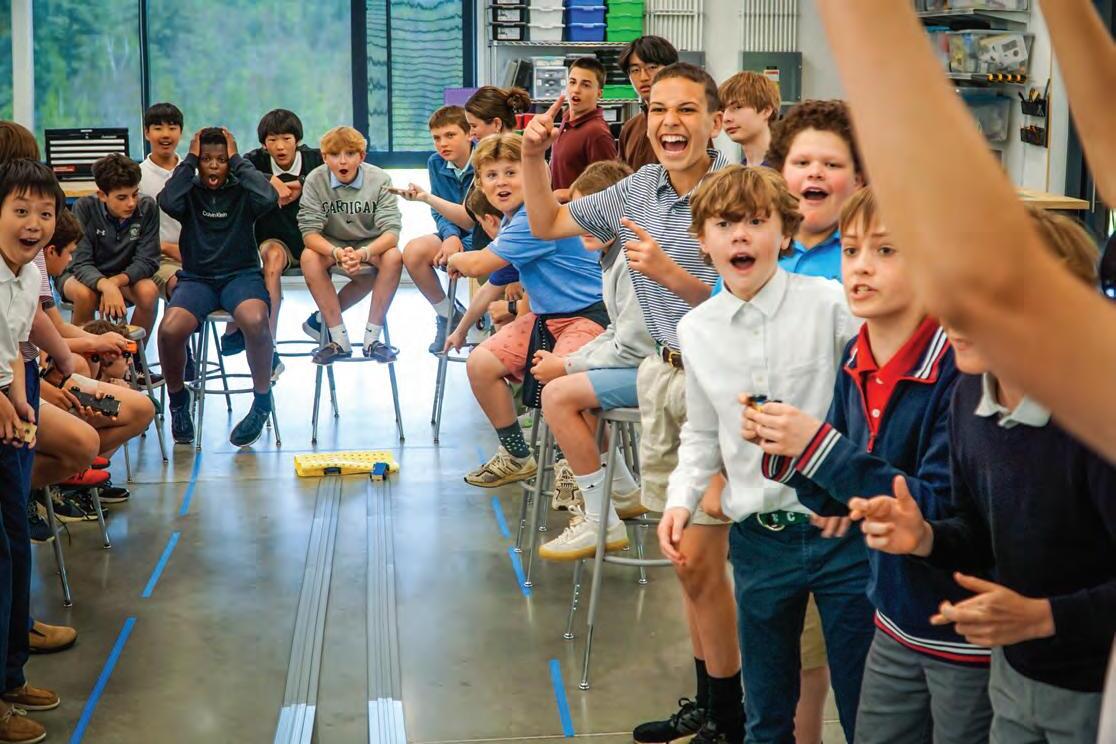 that establish the Core Values of Compassion, Respect, Integrity, and Courage—through role playing, creating dorm contracts, and building boats with their dorm mates for the annual Cardboard Boat Regatta. From the very beginning, the collective spirit of Cardigan is nurtured and developed. By the time a championship game takes place at the end of the fall, the boys have worked hard enough and built enough friendships that they can feel the spirit of Cardigan when that final buzzer sounds and they get to celebrate a well-earned victory. It’s perhaps the easiest way to appreciate and engage with the concept of spirit; it’s in the nature of a middle school boy to want to belong, and the traditions and communal living of Cardigan give them something to belong to, to believe in.