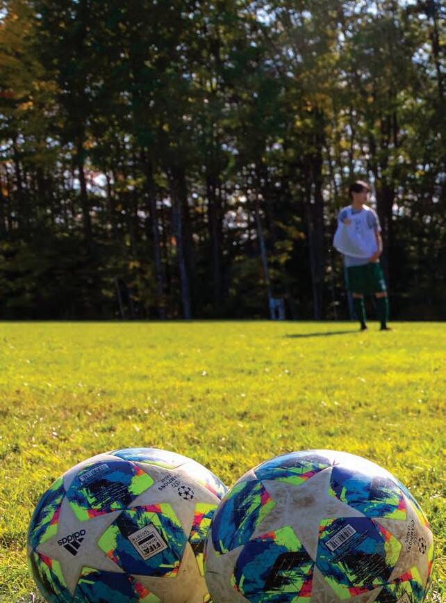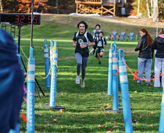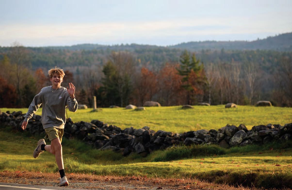 this magazine’s feature. In November, I attended the Lakes Region Championship cross-country running race at Holderness School. It was a bitterly cold fall day and the runners struggled to stay warm in their shorts and racing singlets. The sun, angling from low on the horizon even in the middle of the afternoon, did nothing to warm their muscles. Nonetheless, the runners took off from the start, tackling the notoriously hilly course with determination and stoicism. After photographing the boys as they completed their first lap, I moved to the finish line and waited to capture their final sprints. As one Cardigan boy crossed the finish, I saw through my lens spectators staring at his feet. Sure enough, he was missing a shoe; even before he exited the finish area, in a flurry of excitement, he recounted his final sprint, explaining to his coach how his shoe had flown off his foot as he surged forward. Focused on the finish, he hadn’t bothered to stop to pick it up, despite the gravel that poked the bottom of his foot as he ran. His teammate, however, just seconds behind him, stopped to help. He took the time to pick up