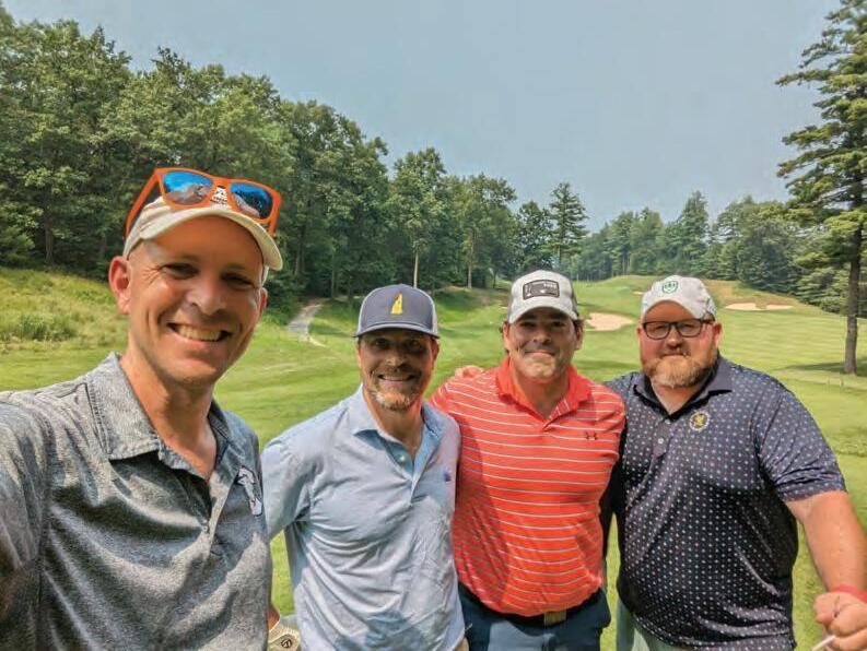 . Hedi Droste, Steff McCusker H’, Dave McCusker ’, and Cam McCusker ’ . The whole crew at Red Tail Golf Club . Chris and Cynthia Day with Eric Anderson ’ and friend Jay Leiendecker . Jon Wakely ’, Scott Powers ’, Mike McLean ’, and Paul Leahy ’ . Joe Burnett ’ with Ted McNaught ’, Jonathan Boucakis ’, and Brendan Hynes ’