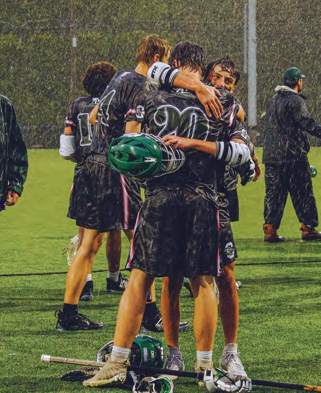 As the light drained from the sky, storm clouds let loose torrents of rain over Campbell Field, and the Varsity Lacrosse Team called on the collective spirit of the school to help maintain its lead through the end of the game. Students, faculty, and parents huddled under umbrellas on the edges of the field, heads turning in sync to track the trajectory of the ball, sending out their collective resolve for a win. The boys on the field, not wanting to disappoint, responded, fighting hard to earn every point they scored and every shot they defended.