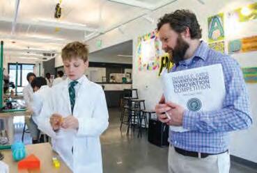 Take for example the Classes of 2024 and 2025 and Director of Gates Eric Escalante P’20,’22. Ushering an idea from its first spark to a working prototype and presenting that idea to a live audience takes courage; I remember being 11 and 12 years old, and I avoided presenting to my peers and teachers at all costs. ese young scholars, however, stood tall during the Charles C. Gates Invention & Innovation Competition, looking directly at their audience and giving articulate sales pitches without hesitation; Wallach was filled with an energy and enthusiasm that any high-tech cutting-edge engineering firm would welcome in its lab. e sixth and seventh graders are an impressive bunch with more than a modicum of perseverance and enthusiasm, and yes, courage to literally try something new. You can learn more about their Gates inventions on page 32.