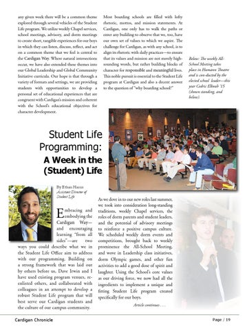 mbracing and embodying the Cardigan Way— and encouraging learning “from all sides”—are two ways you could describe what we in the Student Life Office aim to address with our programming. Building on a strong framework that was laid out by others before us, Dave Irwin and I have used existing program venues, reenlisted others, and collaborated with colleagues in an attempt to develop a robust Student Life program that will best serve our Cardigan students and the culture of our campus community. Cardigan Chronicle