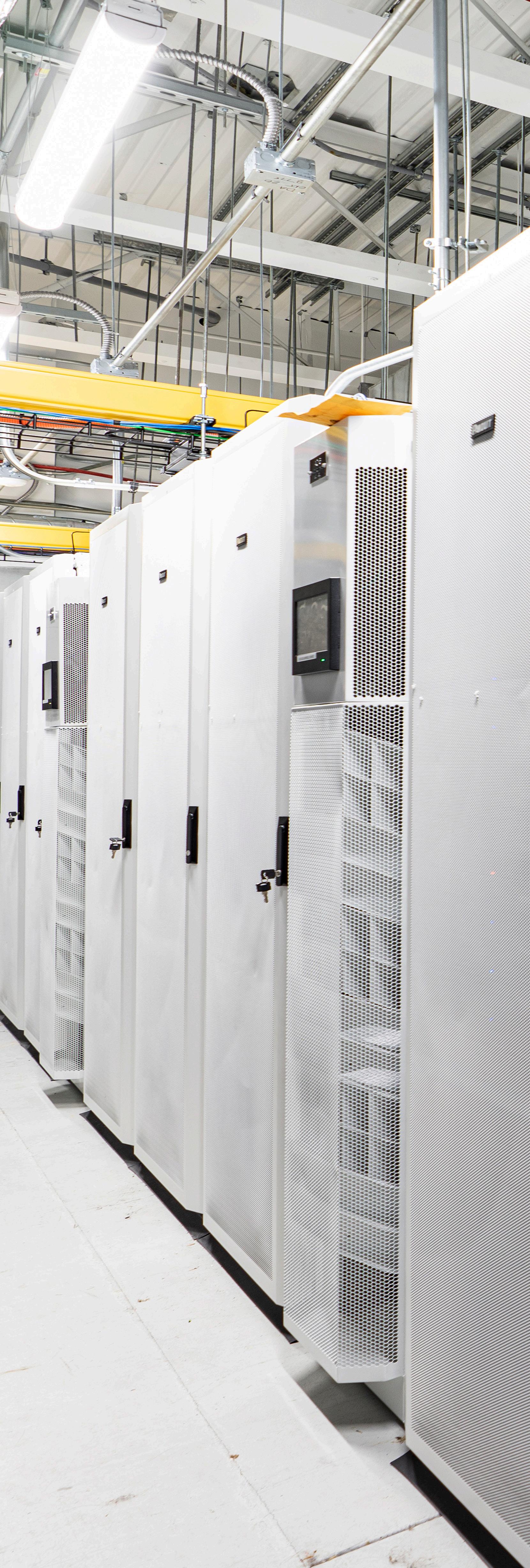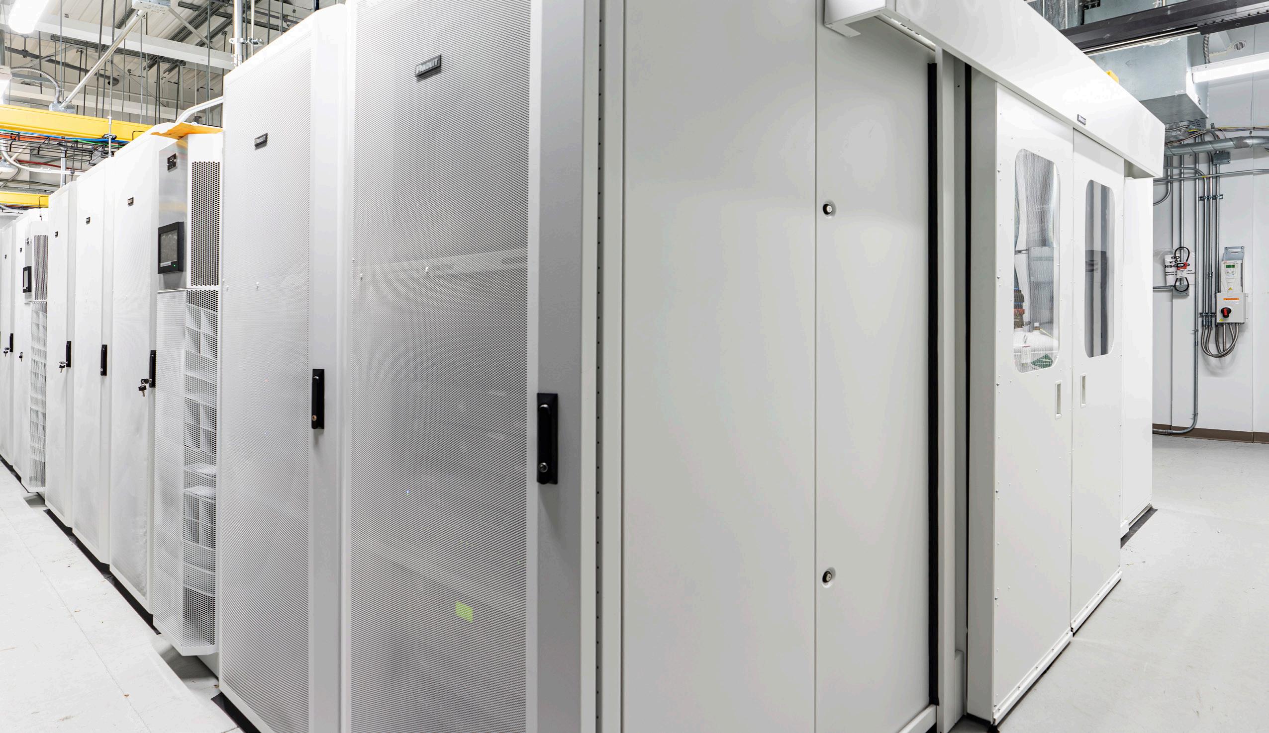 It was built with upgraded wiring, leak detection and environmental controls to maintain proper temperature for all the equipment. This is achieved by using state-of the-art hot aisle containment systems. It also has the capability to monitor equipment and power statistics that could not be done previously.