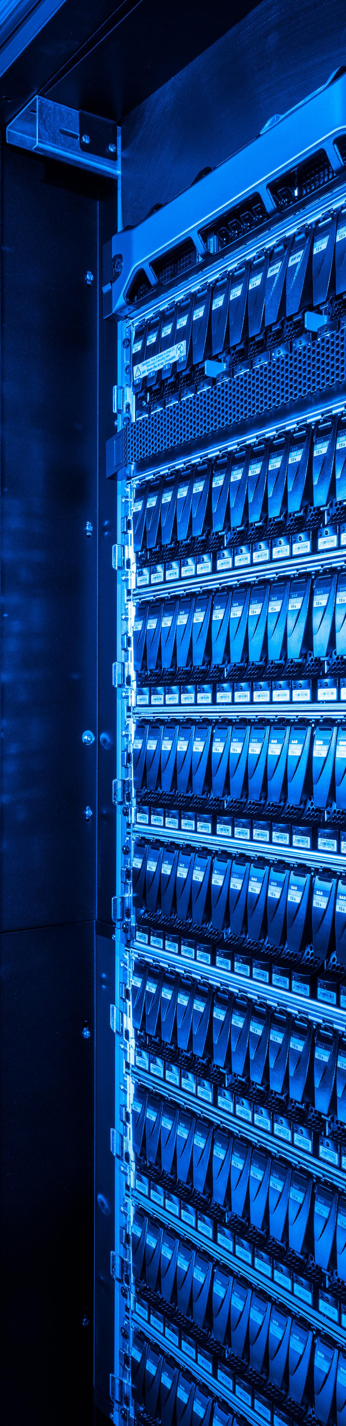 Critical data storage for the campus is also supported by a smaller, redundant data center in the main hospital. The redundant data center is located in a repurposed radiology vault with concrete wall protection.