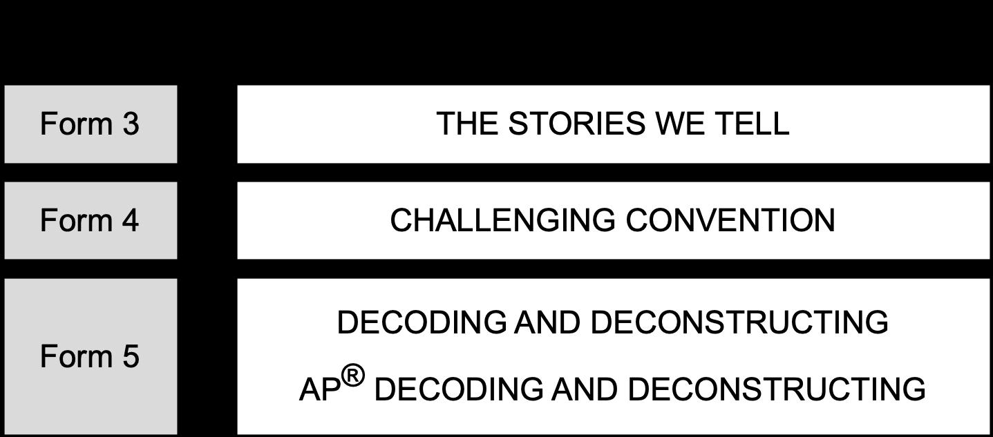 In English 4, we focus on texts that challenge convention through characters, themes, structure, and style as we ask students to examine their notions about what a literary analysis, a sentence, or a topic of academic discussion should be.