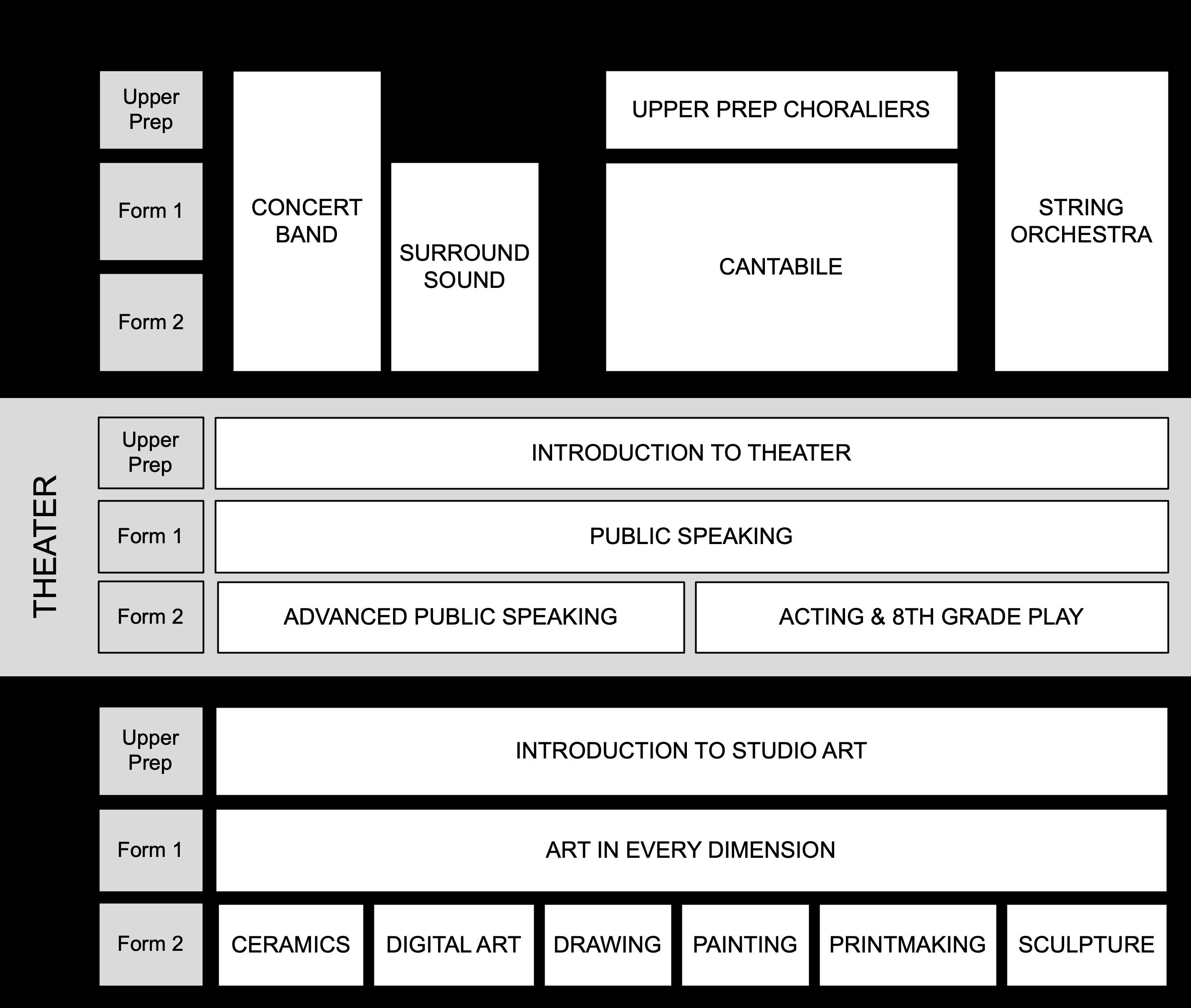 Form 2 students should choose courses from either the Theater and Visual Arts electives or arts block electives that are offered in other disciplines, such as Robotics. In addition, all Form 2 students are required to take Life Skills 2 (a health and wellness course) during this block.