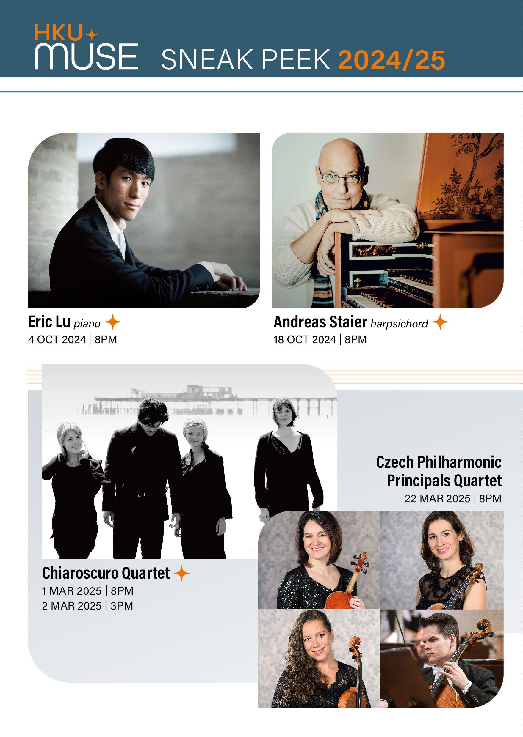 Thank you for coming to this HKU MUSE event. To ensure that everyone enjoys the music, please switch off your mobile phones and any other sound and light emitting devices before the performance. Unauthorised photography and audio/video recordings in the Hall are prohibited. Enjoy the concert and come again. Supported