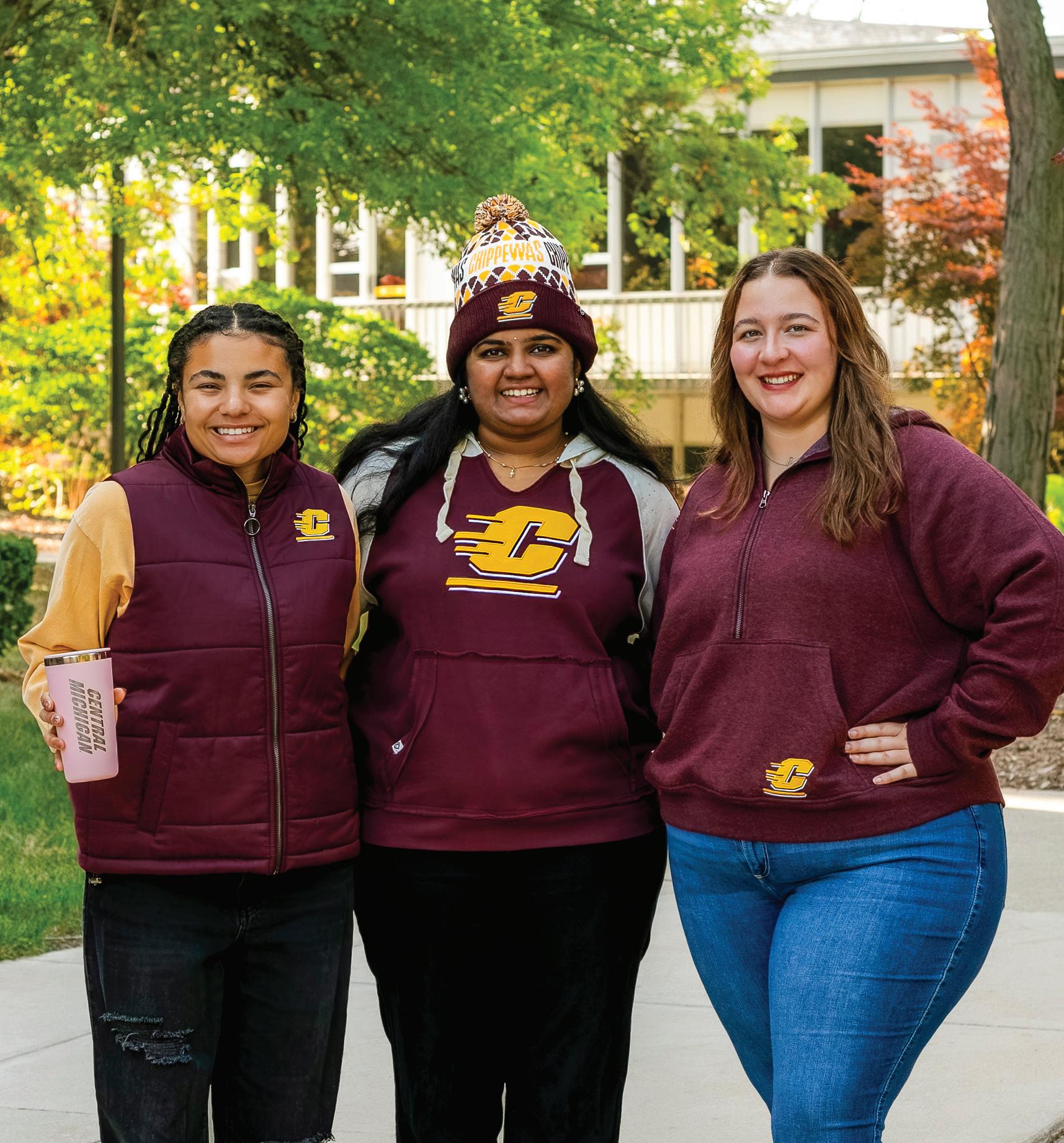 Centralight is published three times each year by the Central Michigan University Office of Alumni Relations. It is printed by Walsworth Printing, St. Joseph, MI, and entered at the Mount Pleasant Post Office under nonprofit mailing. CMU is an Equal Opportunity Employer and institution. CMU does not discriminate against persons based on age, color, disability, ethnicity, familial status, gender, gender expression, gender identity, genetic information, height, marital status, national origin, political persuasion, pregnancy, childbirth or related medical conditions, race, religion, sex, sex-based stereotypes, sexual orientation, transgender status, veteran status, or weight. Copies of Centralight are distributed to alumni and friends of the university who are paid Gold Members or donors to CMU. A virtual edition of the magazine is available free online at go.cmualum.com/centralight UComm 11938–24,000+ (11/25)