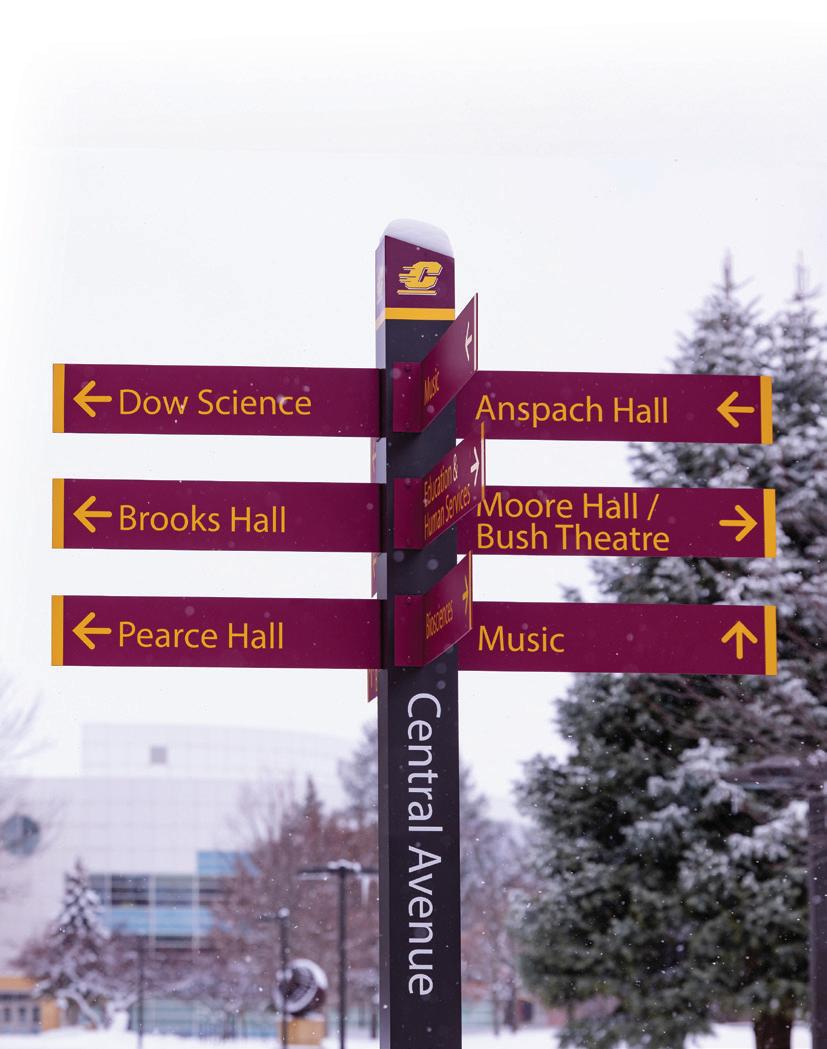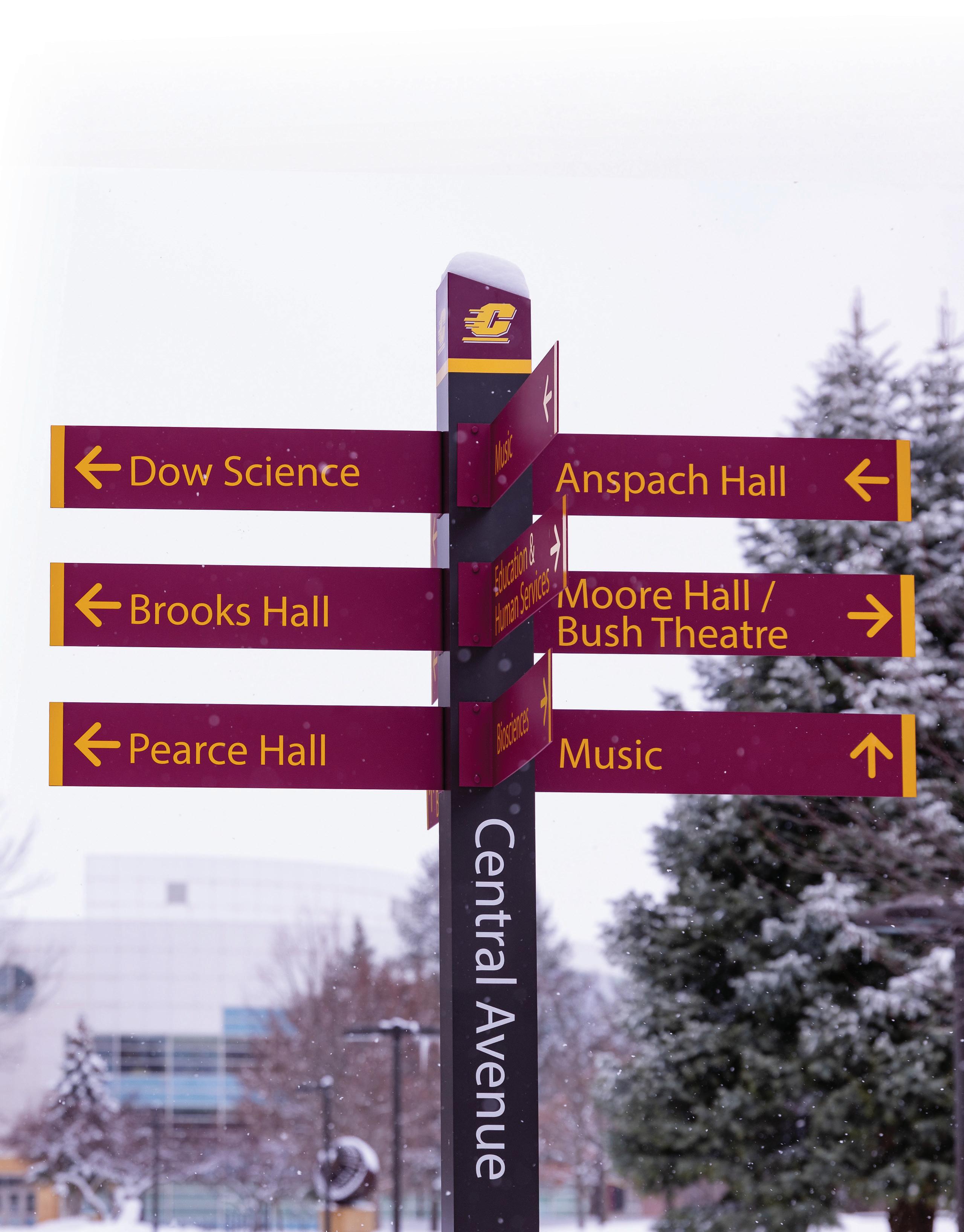 When was the last time you walked around our beautiful campus? Even if it’s been decades, you don’t need to worry about losing your way — we’ll make sure you’re pointed in the right direction. Stop by and see us in Mount Pleasant and add your footprints to our snow!