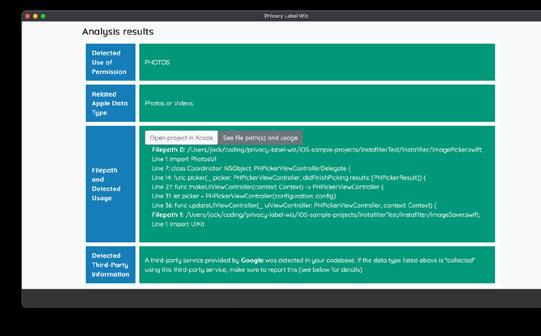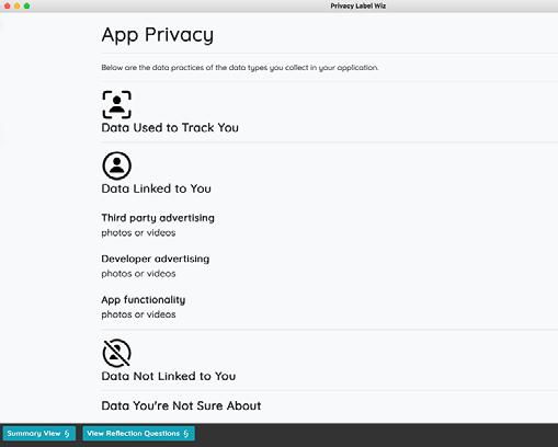 When the process is complete, Privacy Label Wiz generates a summary report for developers to review.
