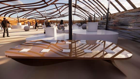 A Meal Space For 100 invites the patron to visit a beachside area to share a venue with a hundred other people in a rich and inviting space to dance eat and enjoy.