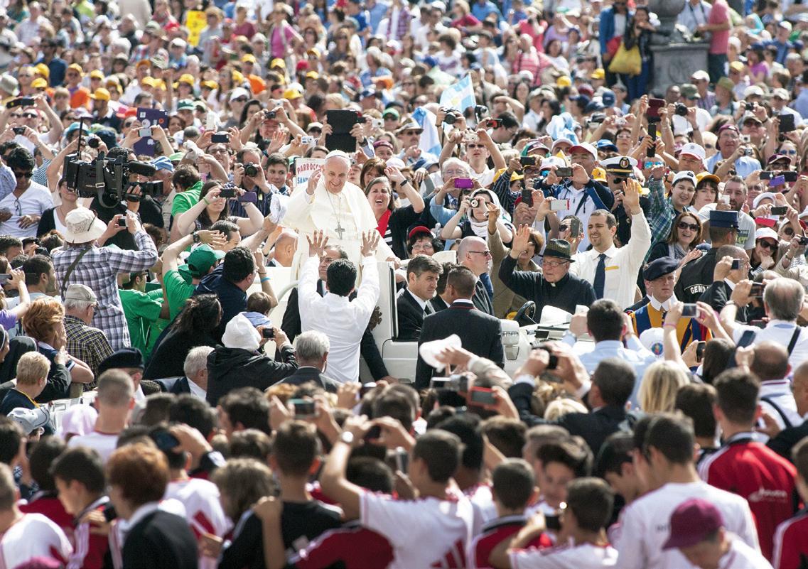 Is fíor go mbaineann coimpléasc bunúsach le Proinsias mar dhuine, ach maidir leis an treoir a thugann sé agus ó thaobh sampla a shaoil féin de, níl éiginnteacht de shórt ar bith i gceist don té a chaitheann cóta Chríost. Ó shuigh Proinsias i gcathaoir Pheadair, creidim go bhfuil snáithe choitianta amháin a bhíonn fi te fuaite go minic ina chuid cainte le haoirí na hEaglaise, is é sin, go gcaithfi dh aibhleoga an dóchais, chomh maith le bláire an ghrá a bheith láidir inár gcroí istigh agus muid i measc na ndaoine. Bheireann sé treoir dúinn, amharc chun tosaigh, dóchas láidir inár gcroí ár dtiomáint ar aghaidh go muiníneach i gcónaí. Anuas air seo, leagann sé béim faoi leith ar a bheith, ag gríosú agus ag misniú phobal naofa Dé atá faoinár gcúram, chan amháin le briathra ár mbéil ach le bearta fi úntacha ár saoil chomh maith.