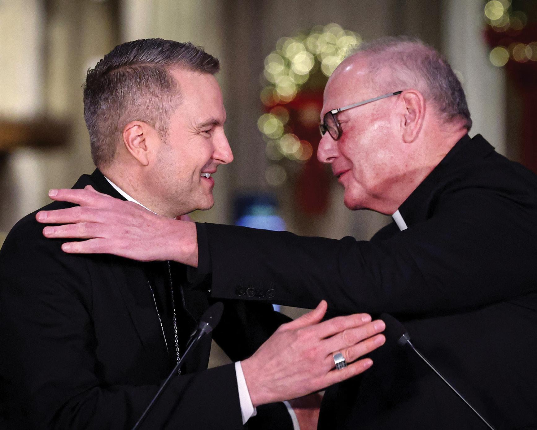 Cardinal Timothy M. Dolan, right, greets then-Bishop Ronald A. Hicks of Joliet, Illinois, at a news conference on 18 December, announcing Bishop Hicks as the next archbishop of New York.