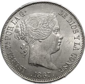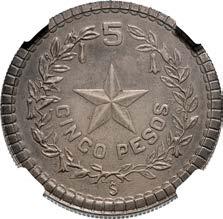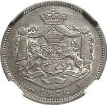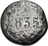 William Wyon is usually given as the engraver for this issue, but it is most likely that the division of labor seen for the British coinage dies persisted for foreign orders, i.e., with Wyon engraving the portraits and Merlen the reverses. The basic design was used by Merlen on several British issues.