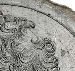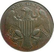 This splasher was made from a die in a nearly finished state. After it was made, Merlen strengthened and added detail to several of the wreath’s berries, as well as to the leaves at the middle left. The design would ultimately be adopted for the circulating coinage and would continue to be duplicated and used until 1887.