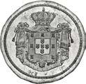 A splasher of an unfinished die, lacking the denomination. Evidently, the engraver began punching the numerals for the denomination with the incorrect punches. The following lot shows the same die, but showing die polish marks indicating the removal of the erroneous numerals and the denomination correctly added. The final master die or hubs would have been sent to the Lisbon mint.