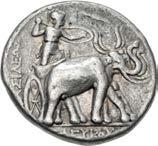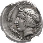 3. All coins are guaranteed genuine. Attribution, date, condition, and other descriptions are the opinion of the cataloguer, and no warranty is expressed or implied. Please note that an auction sale is not an approval sale. Grading is subjective and the opinion of the cataloger. The photographs and videos (when available) of each coin provide additional information for the bidder and supplement the written description found in the catalog. It is the responsibility of the bidder to view photographs and videos and draw their own conclusion as to the quality of the coin they are bidding on. CNG expressly makes no guarantee that our grade and coin descriptions will match those provided by others. No refund will be provided due to grade or “adjectival” comments by a third-party grading service if a coin is submitted for grading after the sale. Any claim of lack of authenticity must be made in writing by the original purchaser immediately after discovery that an item is not authentic, and upon making such a claim the original purchaser must immediately return the lot to CNG in the same condition as at the time of the auction. Any coin returned as “not authentic” which CNG feels is genuine will be submitted to the International Association of Professional Numismatists Authentication Bureau (IBSCC) for final decision of authenticity. No refund shall be made on such coins until the IBSCC makes their determination. This includes coins that have been submitted to a thirdparty grading service after the auction. Coins that have been previously encapsulated (“slabbed”) by a grading and/or authentication service may not be returned for any reason, including authenticity, if they have been removed from the encapsulation (“slab”). If payment is made by credit card, rights of return are governed by these Auction Terms which supersede any rights of return promulgated by the card issuer. Estimates are intended as a guide only and not as a statement of opinion of value.