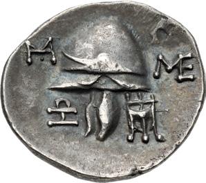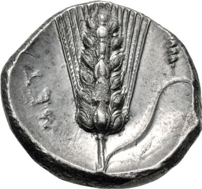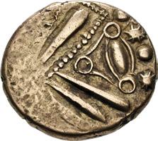 up shape viewed from the sea), while the reverses bore the imprint of the punch used to force metal into the obverse die. The weight standard was based on a drachm of about 6.1 grams; two of these made a stater weighing 12.2 grams, which became the most commonly struck denomination, although single drachms down to tiny fractions were also produced. The Aeginetan chelones (turtles) had a Mediterraneanwide circulation in the mid-sixth century making them Europe’s first important trade coin. They are still found in significant numbers today, a testament to how many millions must have been hammered out in ancient times.
