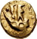 The early turtles took a number of forms, including animals with smooth shells, shells ornamented with rows of dots, and even segmented shells (the presence of flippers shows these are also sea turtles, not land tortoises). The reverse punch originally consisted of an eight-pronged design that produced eight triangles on the reverse, referred to as the “proto-Union Jack” type. This was followed by the “mill sail” incuse pattern around 525 BC, closely followed by the “skew” pattern. The obverse design was also modified by the addition of a row of large dots added at the collar from the earlier collared turtle design with a single row of dots down its shell, hence the name “T-back.”