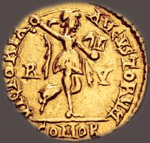 north. The Tarentines at first tried to cope with these rivals with their own military resources, but in the fourth century BC they sought aid from a succession of Greek freelance military adventurers seeking to emulate the conquests of Alexander III ‘the Great’ of Macedon. These included the Spartans Akrotatos and Kleonymos, and finally Pyrrhos of Epeiros (he of “Pyrrhic Victory” fame). All of these episodes seemed to follow the same pattern: Early success, followed by getting bogged down, ending with disaster, defeat, and withdrawal. After the finale of the Pyrrhic War, in 272 BC, Tarentum bowed to the inevitable and became a “friend and ally” of Rome, effectively submitting to Roman rule. The “military adventurer” phase saw the introduction of an impressive and attractive gold coinage, no doubt to pay mercenary soldiers who were used to receiving Macedonian gold.