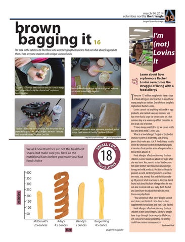 “I packed pretzels and an apple, applesauce, a sandwich, and an orange. I pack because it’s healthy” freshman Eli Fischer compiled by marlee reisinger