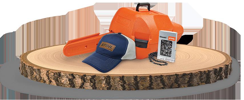 With the purchase of any Eligible STihl gas Powered chainsaw. ① Kit includes Woodsman® Carrying Case, Oilomatic® Chain and STIHL Hat.
