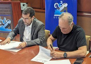 En la gráfica superior constan: Guillermo Morán, director de Tunacons; José Luis Arens, asesor legal; Andrés Arens, viceministro de Acuacultura y