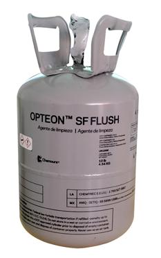 Este producto fue desarrollado para reemplazar al R-141 B en la aplicación de limpieza de sistemas de refrigeración. Este es un producto HFO que viene presurizado con nitrógeno y sirve para limpiar sistemas de refrigeración, en caso de quemaduras de compresor y es un producto que tiene un poder de solvencia del doble comparándolo con el R-141 B, según explica.