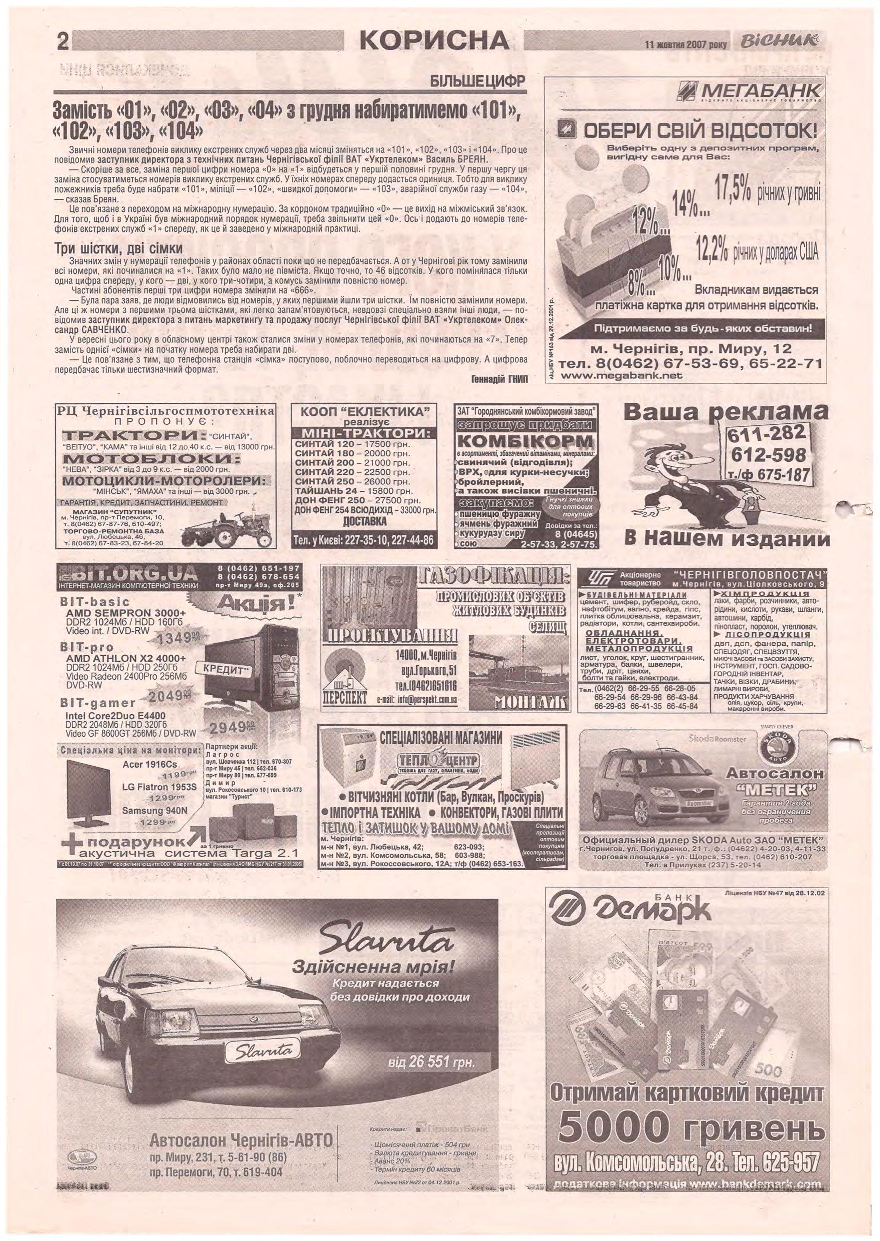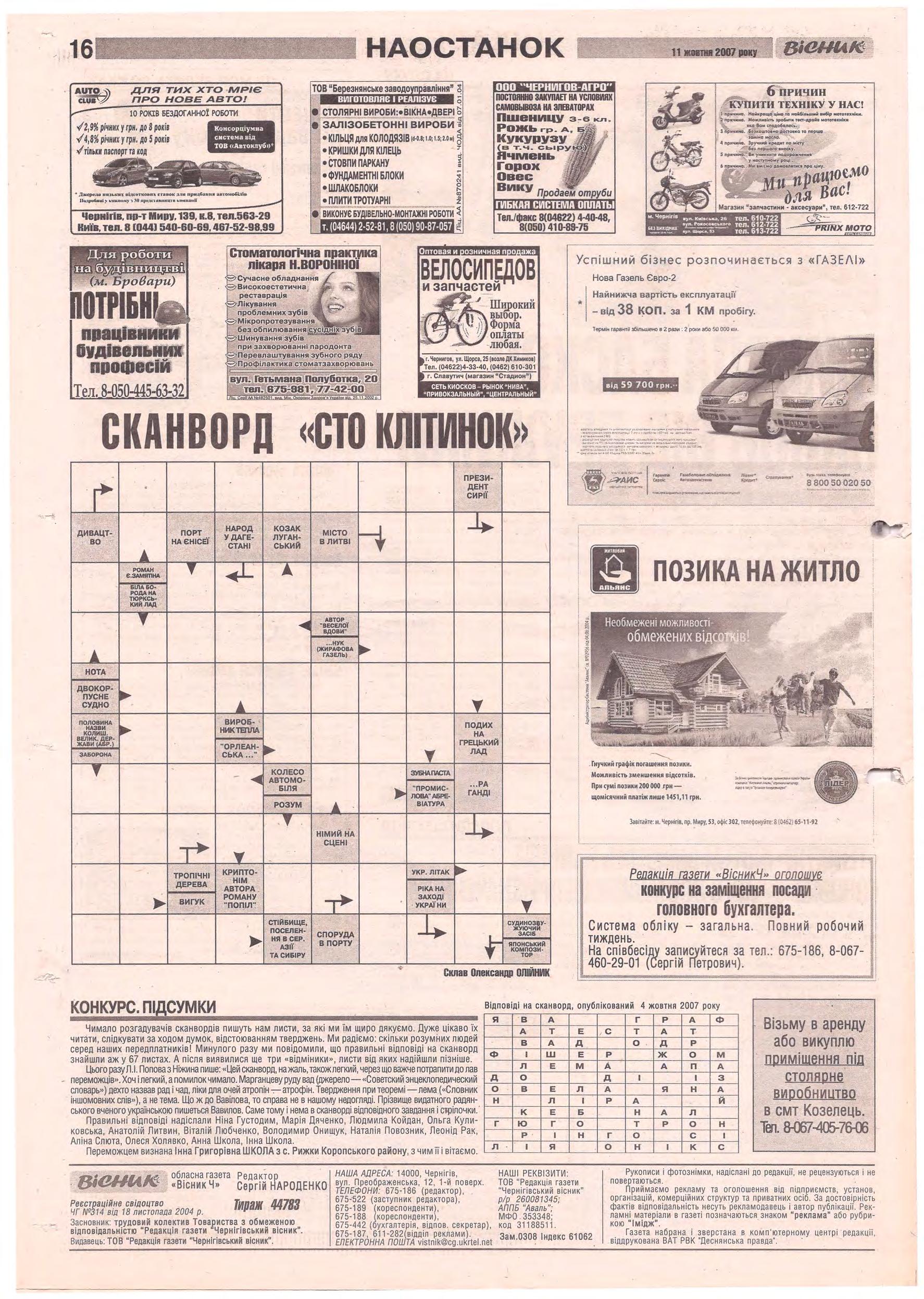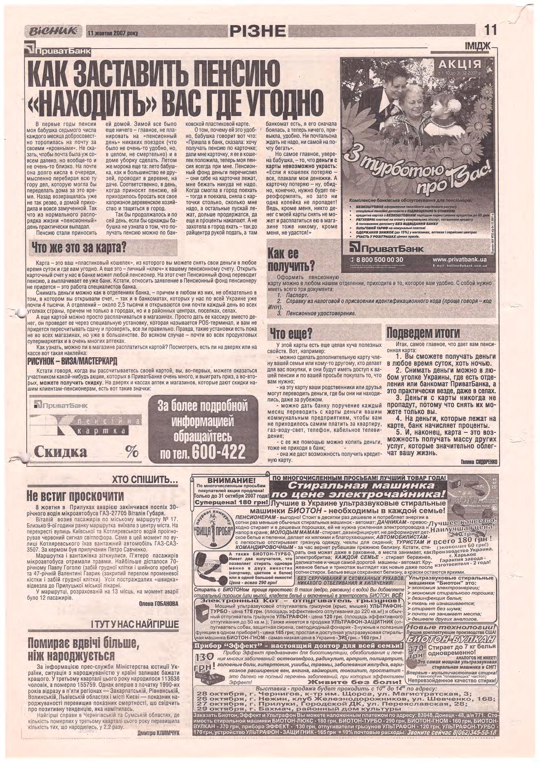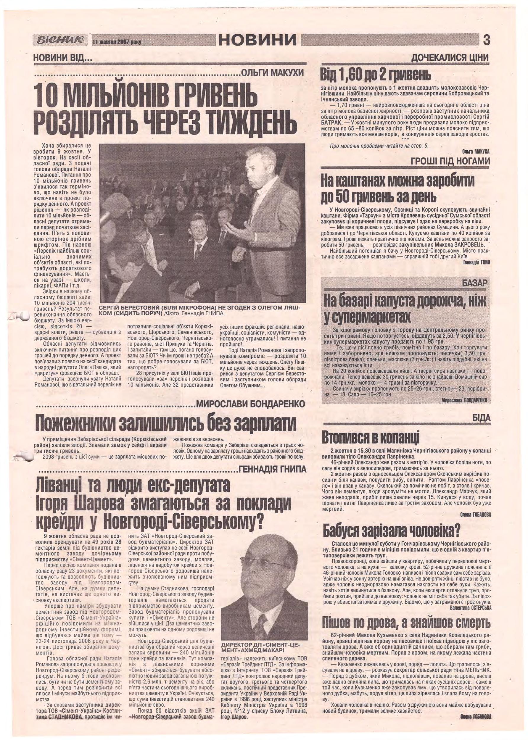 «Вісник Ч», 11 жовтня 2007 року