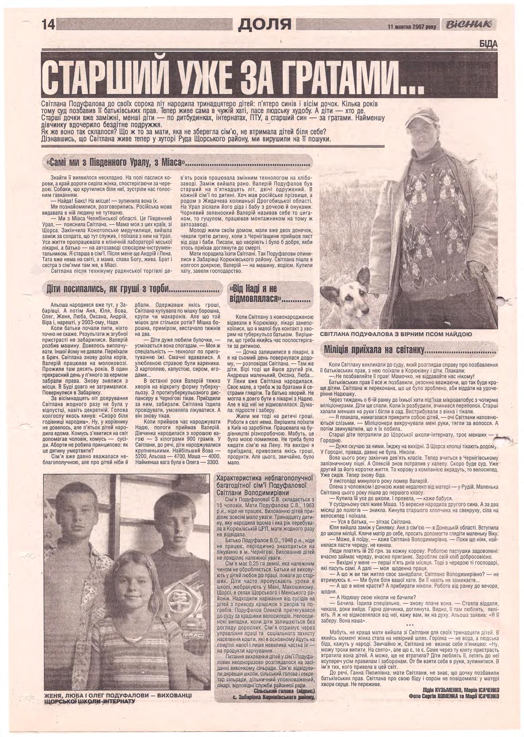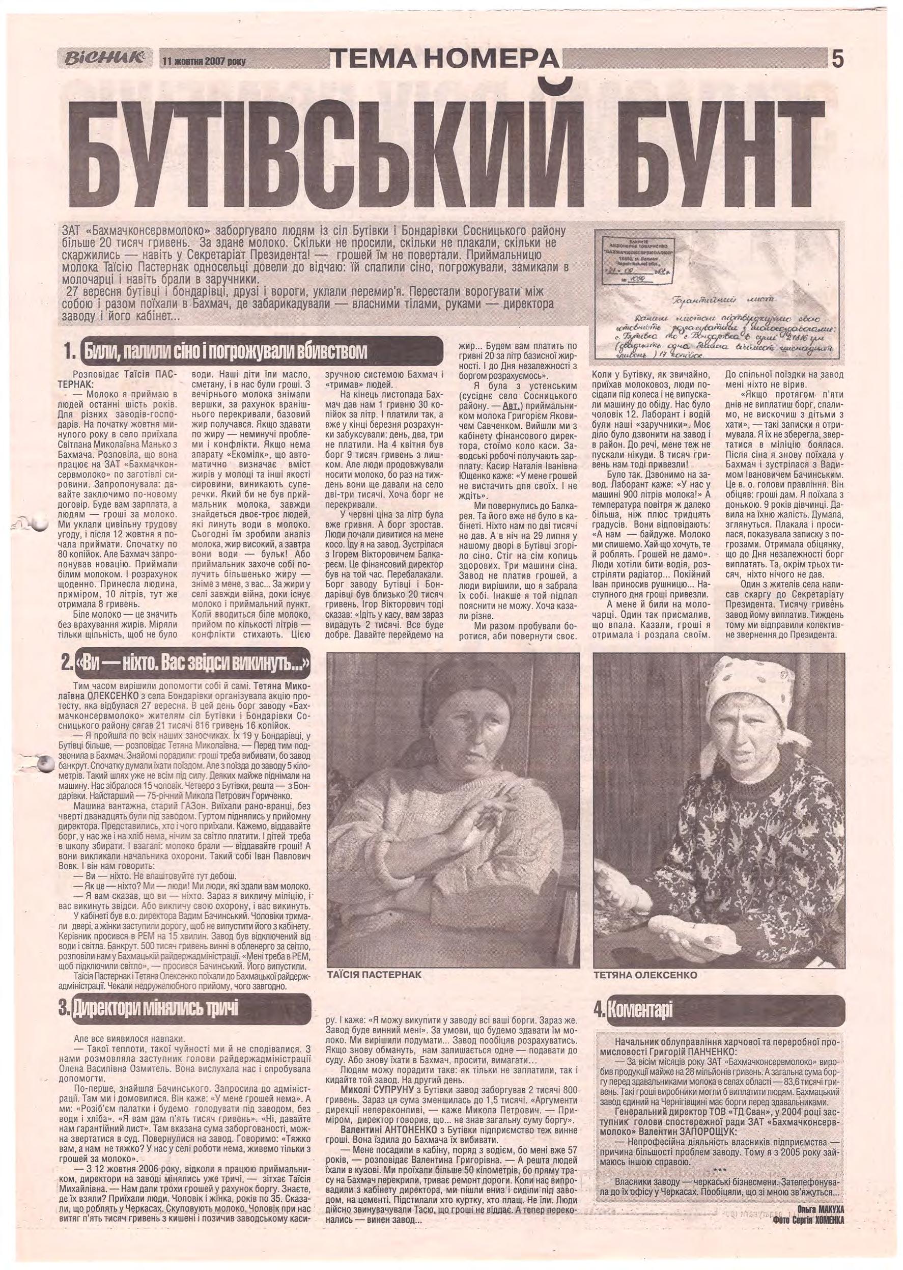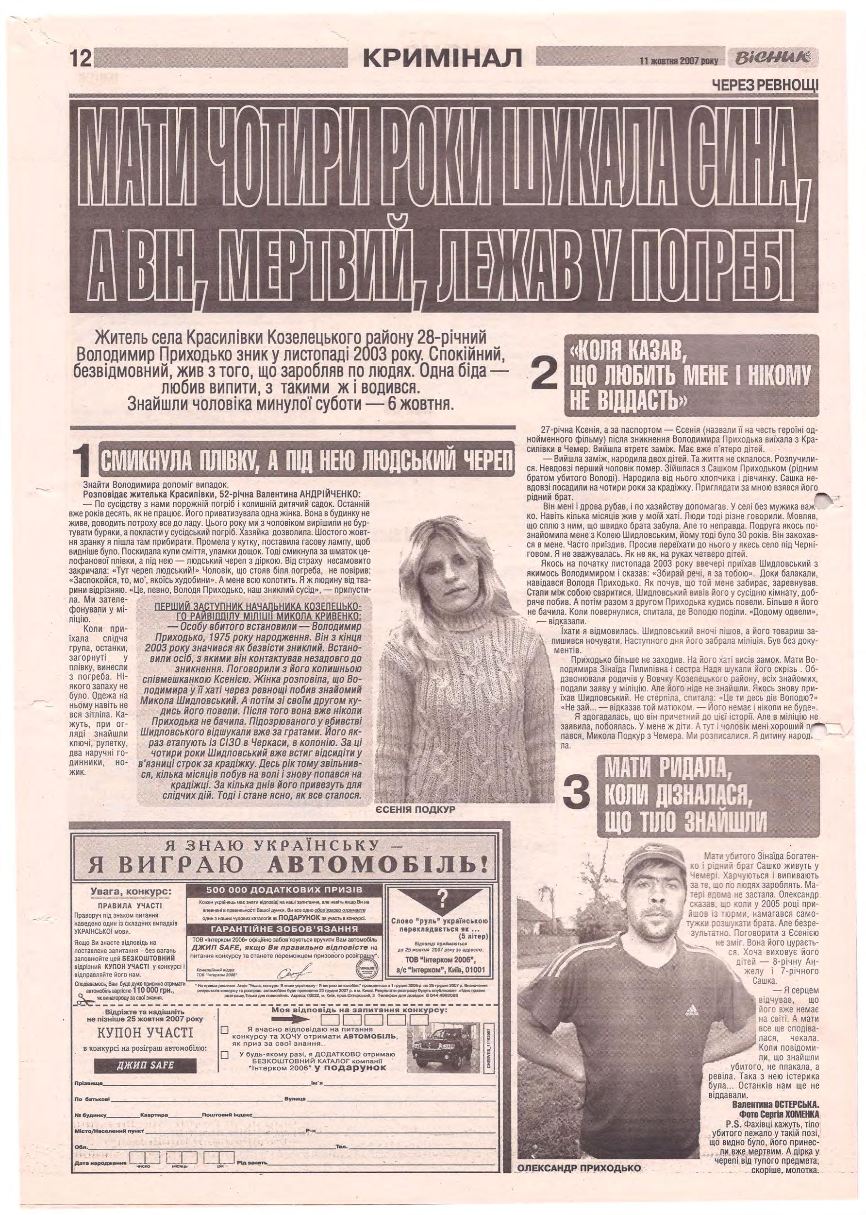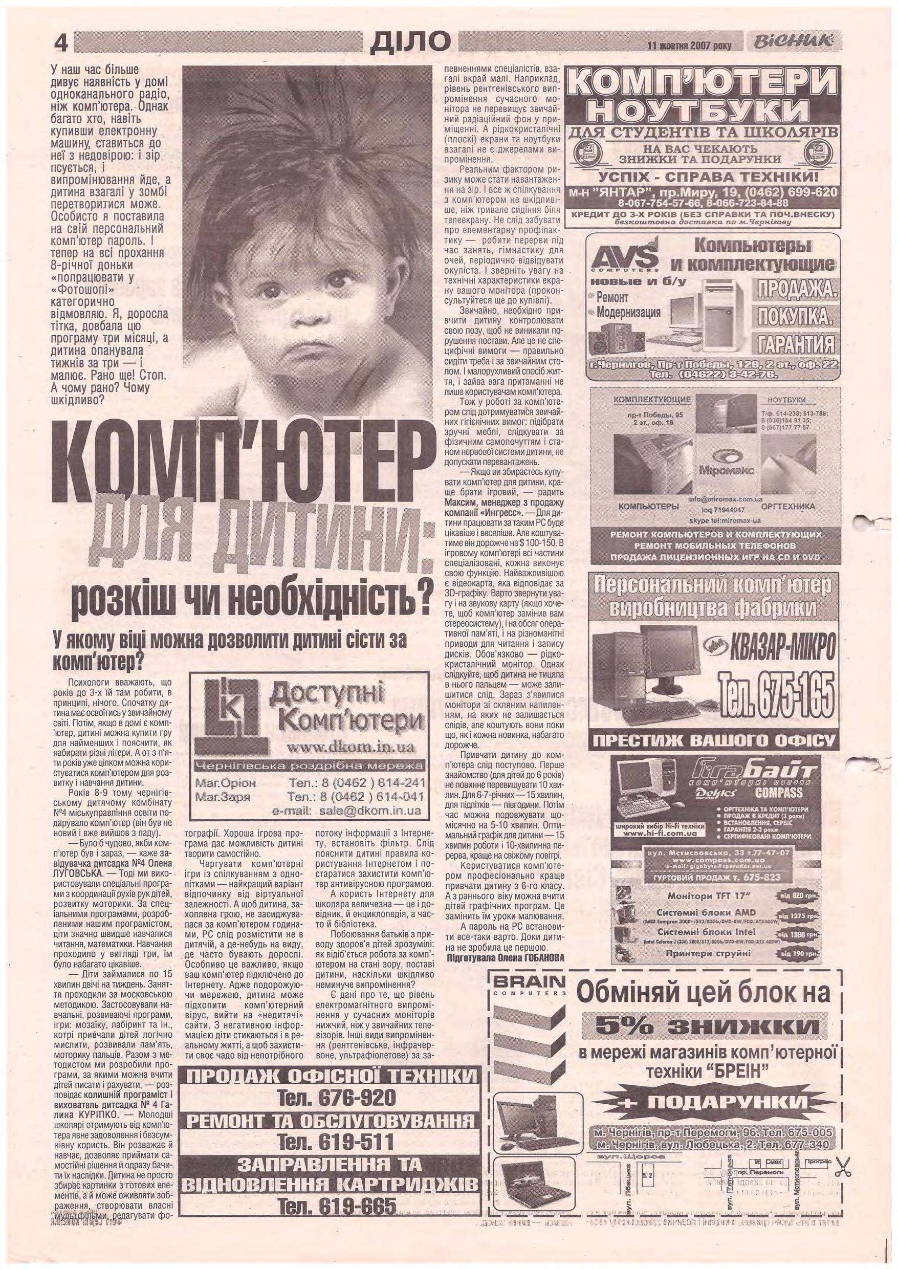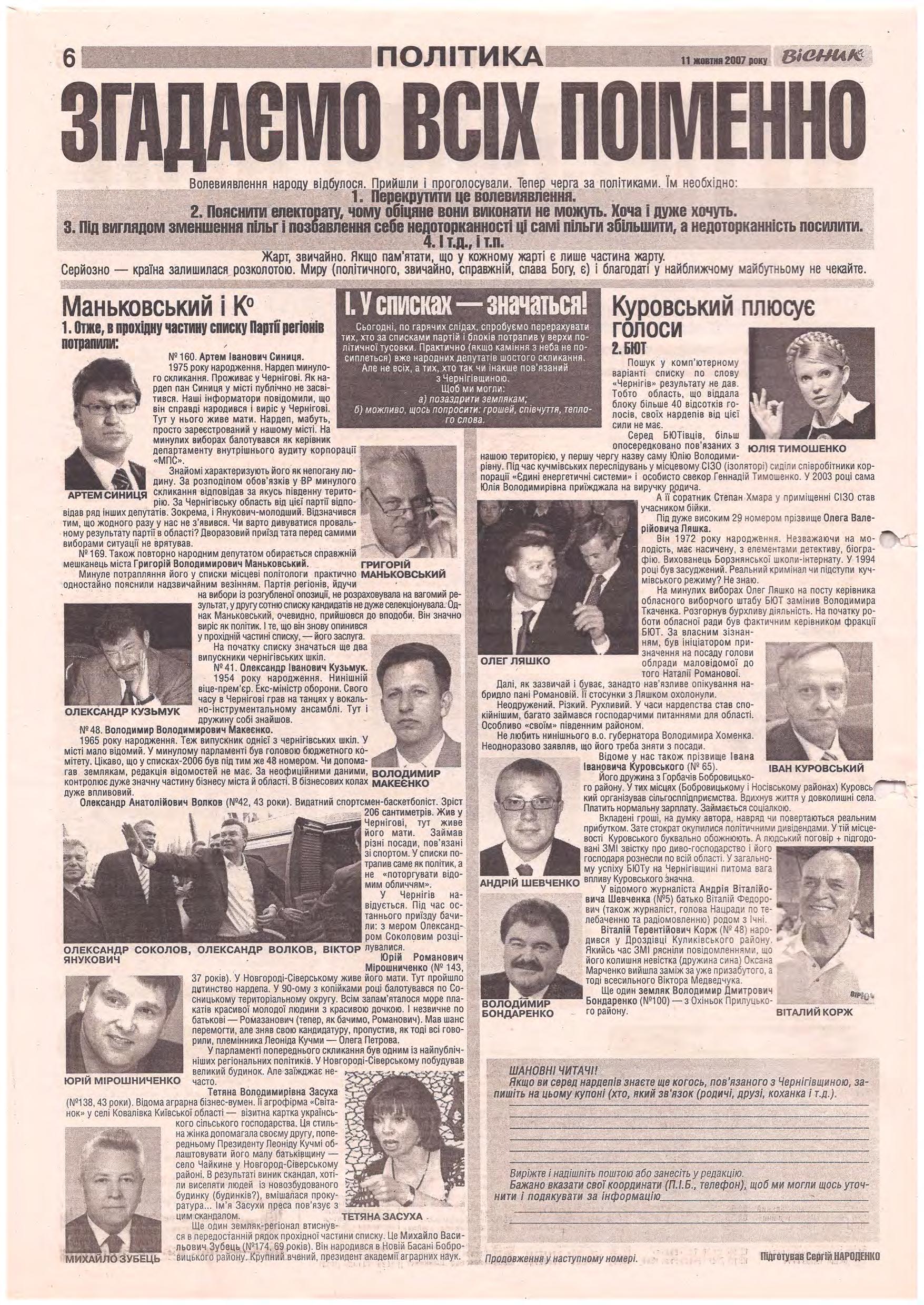 «Вісник Ч», 11 жовтня 2007 року