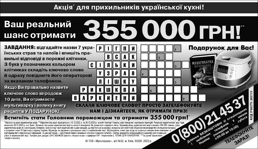 Рукописи фотознімки, надіслані до редакції, не рецензуються і не повертаються. Приймаємо рекламу та оголошення від підприємств, установ, організацій, комерційних структур та приватних осіб. За достовірність фактів відповідальність несуть рекламодавець і автор публікації. Проплачені матеріали в газеті позначаються знаком «реклама», «трибуна», «імідж», «добра справа», «актуально». Люди добрі! Ретельно зважуйте,