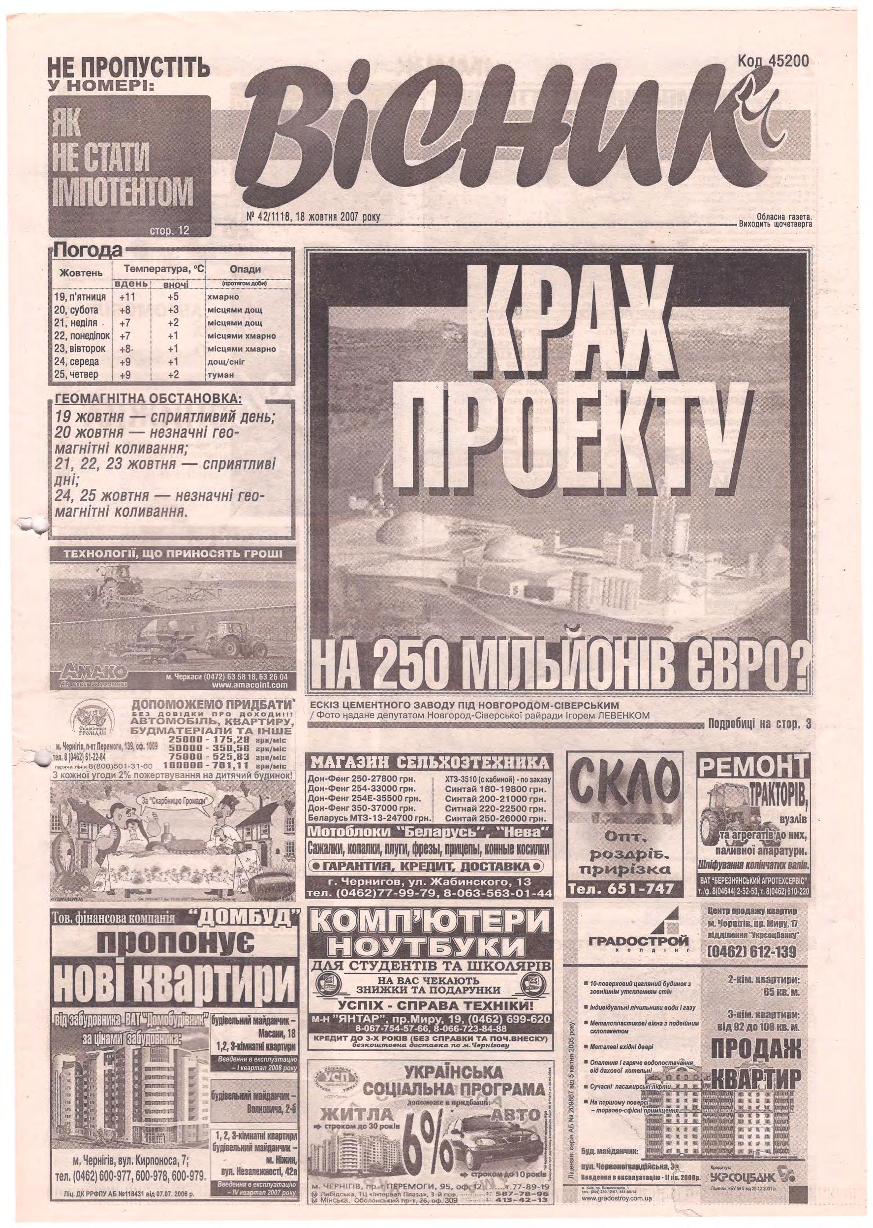 «Вісник Ч», 18 жовтня 2007 року by Час Чернігівський / Вісник Ч - Issuu