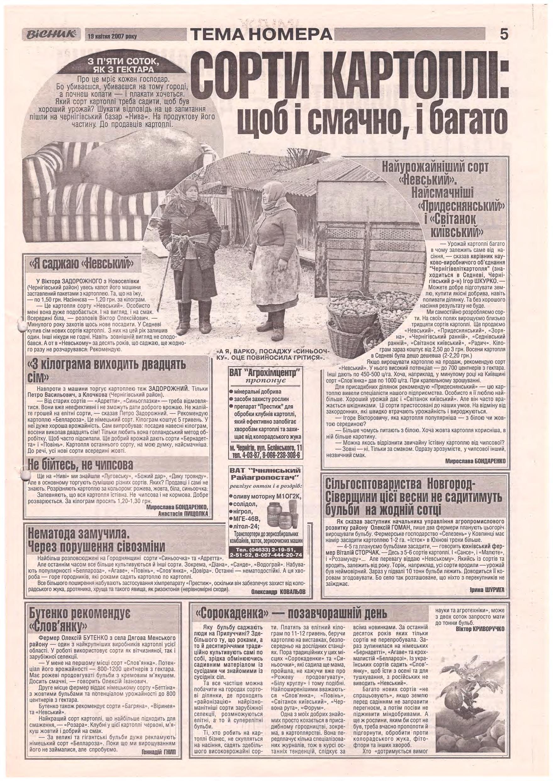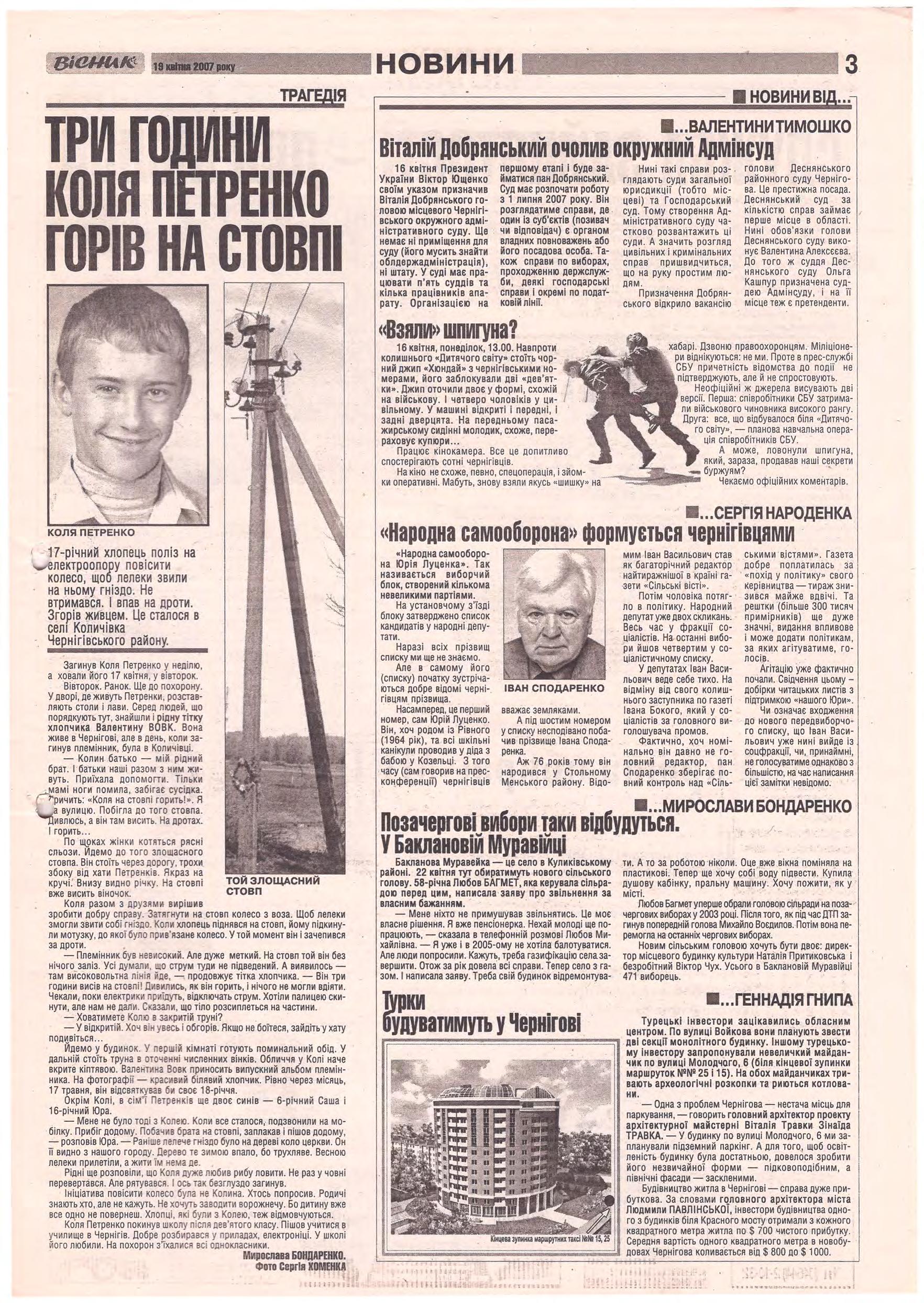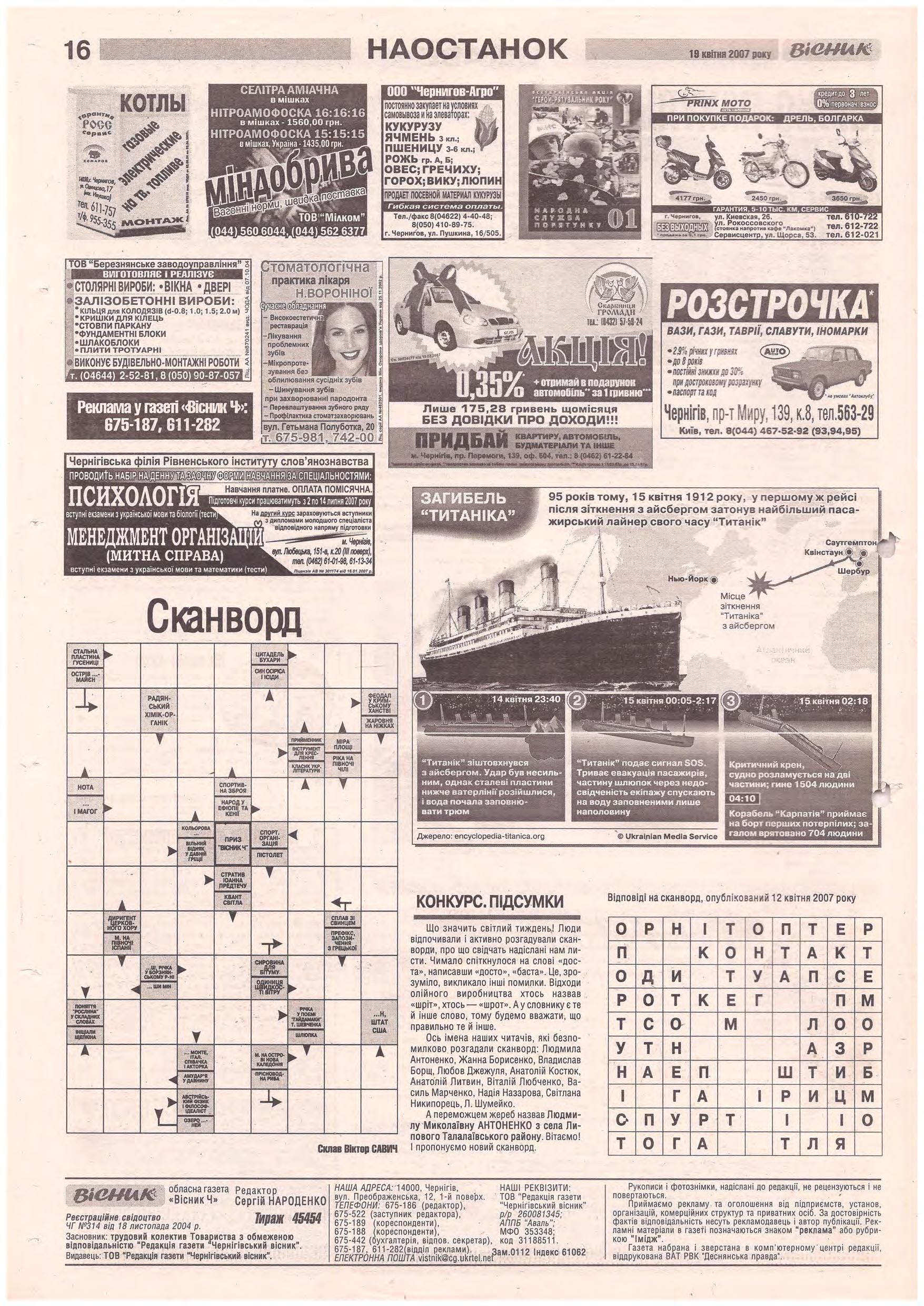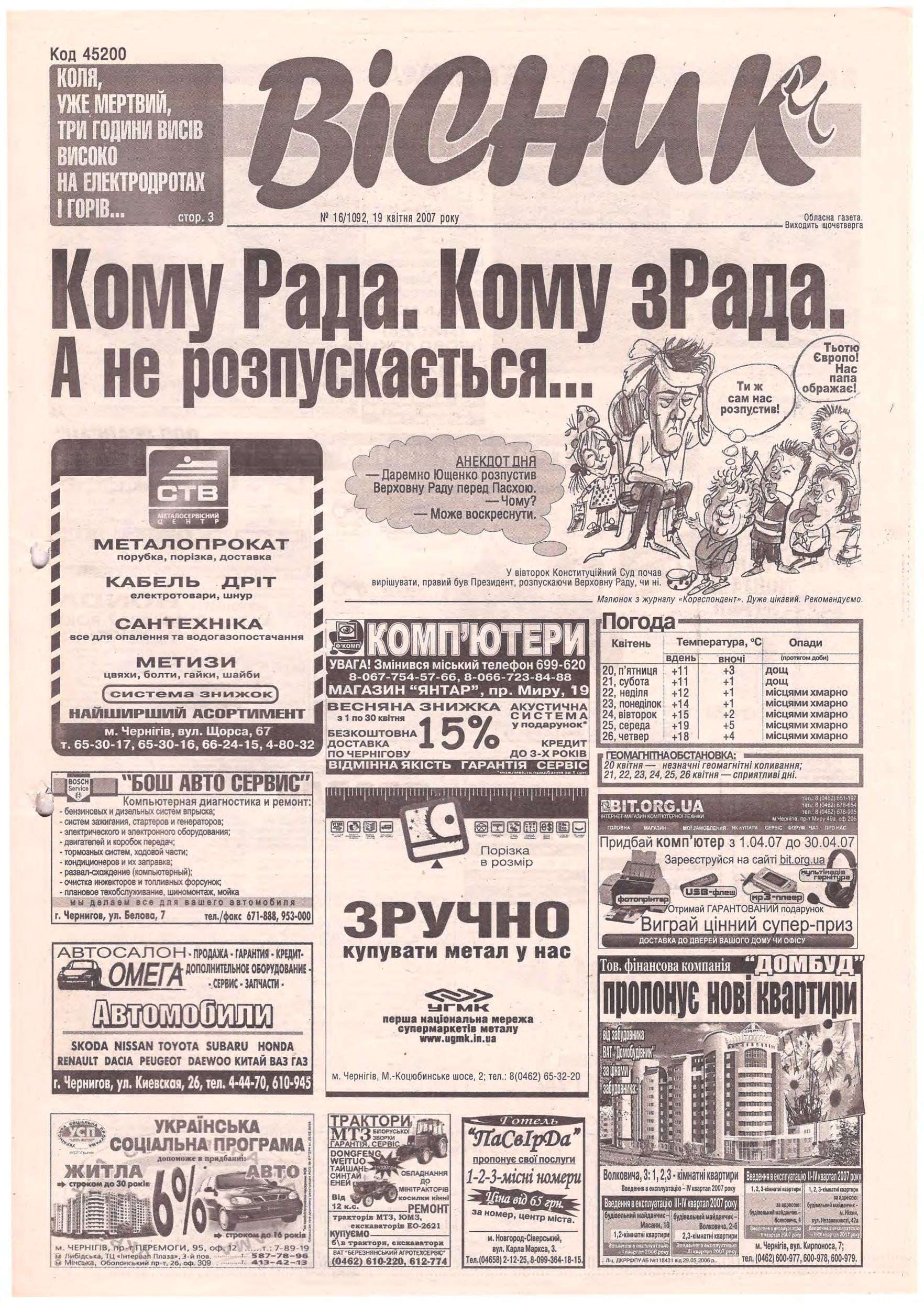 «Вісник Ч», 19 квітня 2007 року