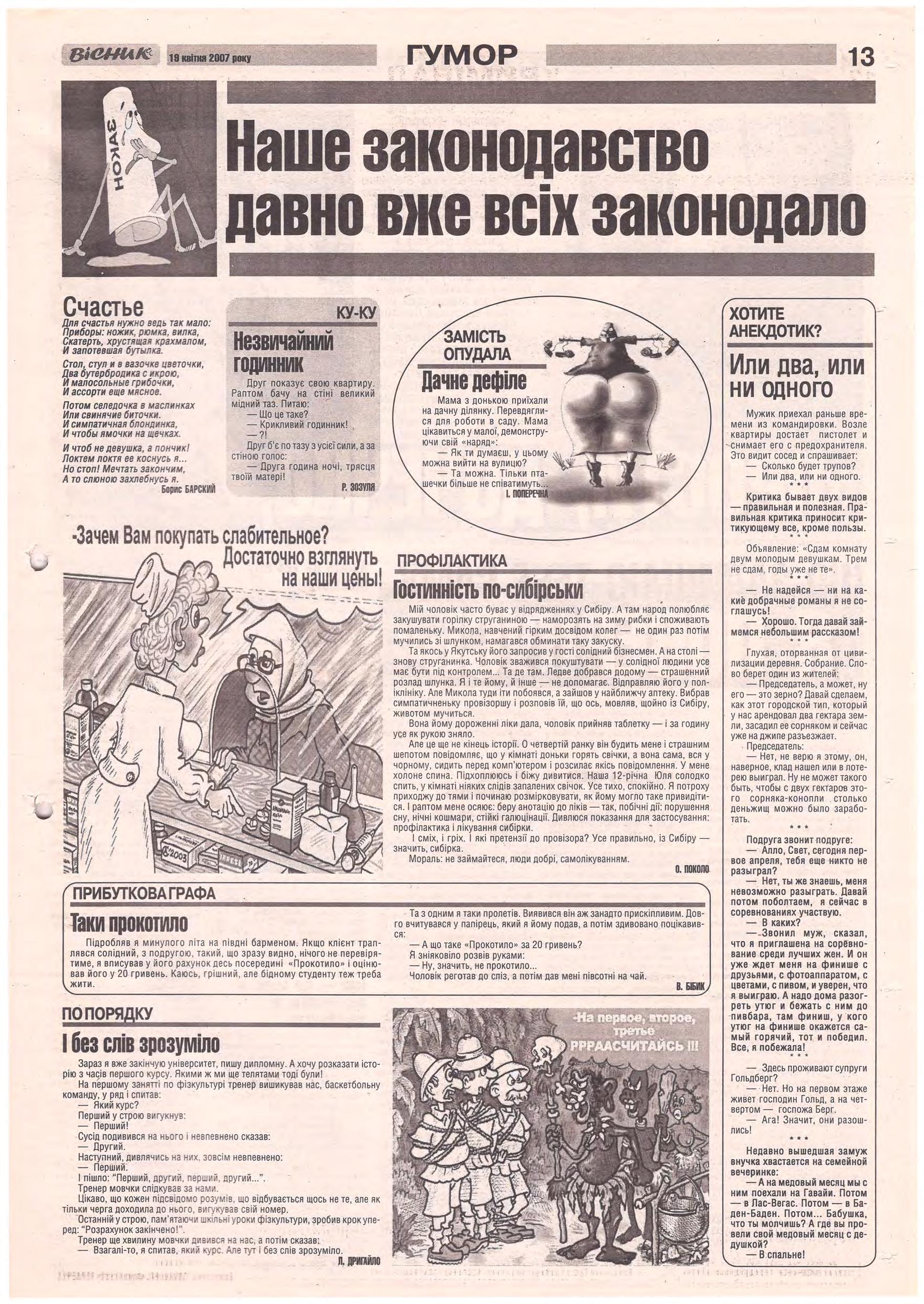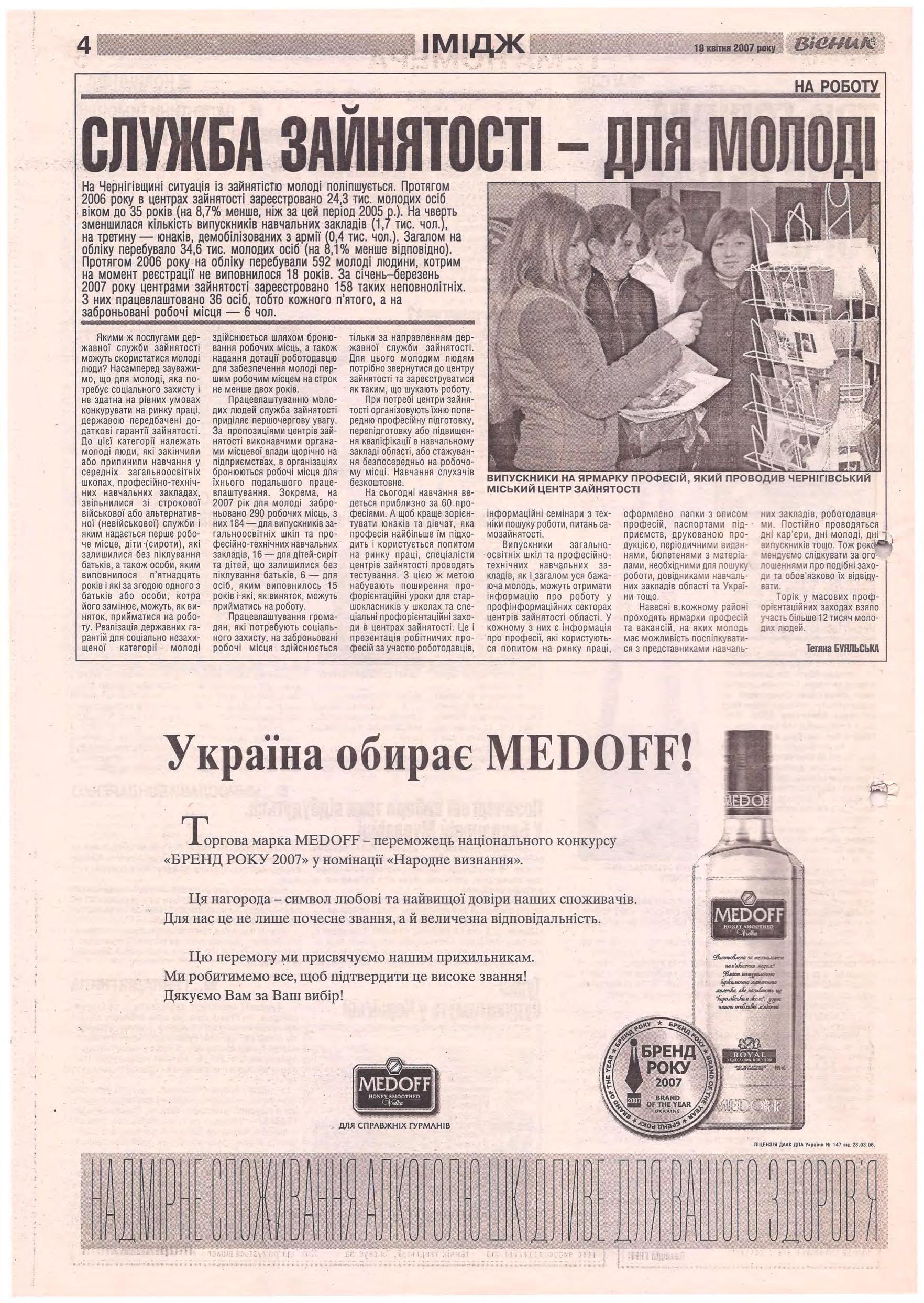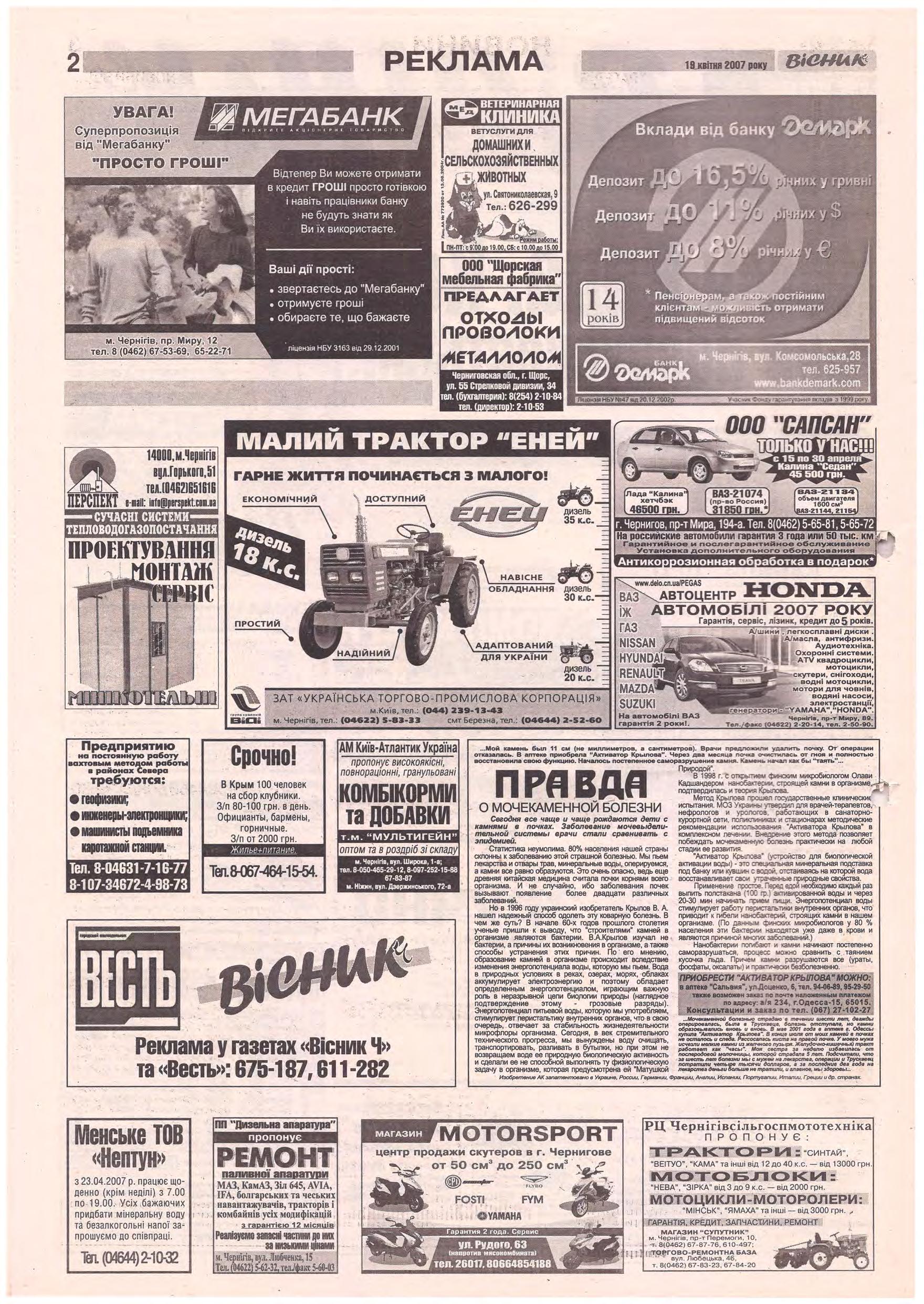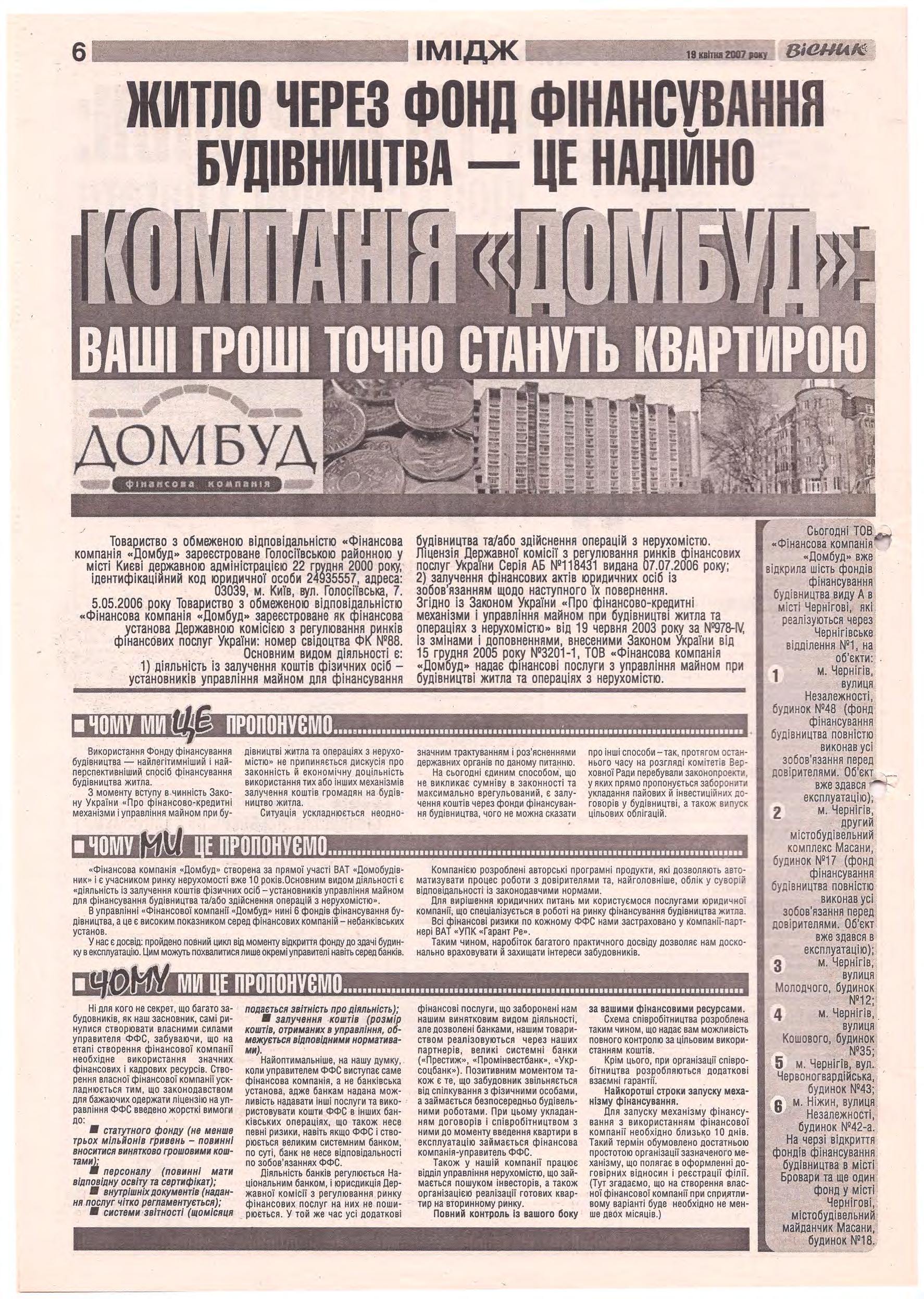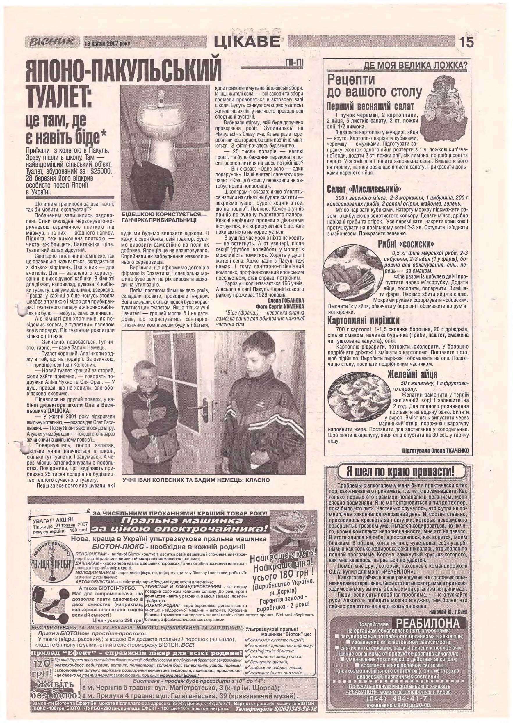 «Вісник Ч», 19 квітня 2007 року