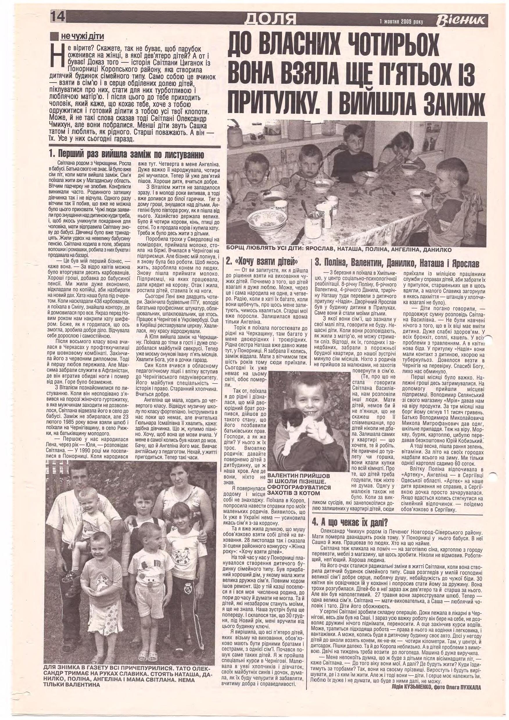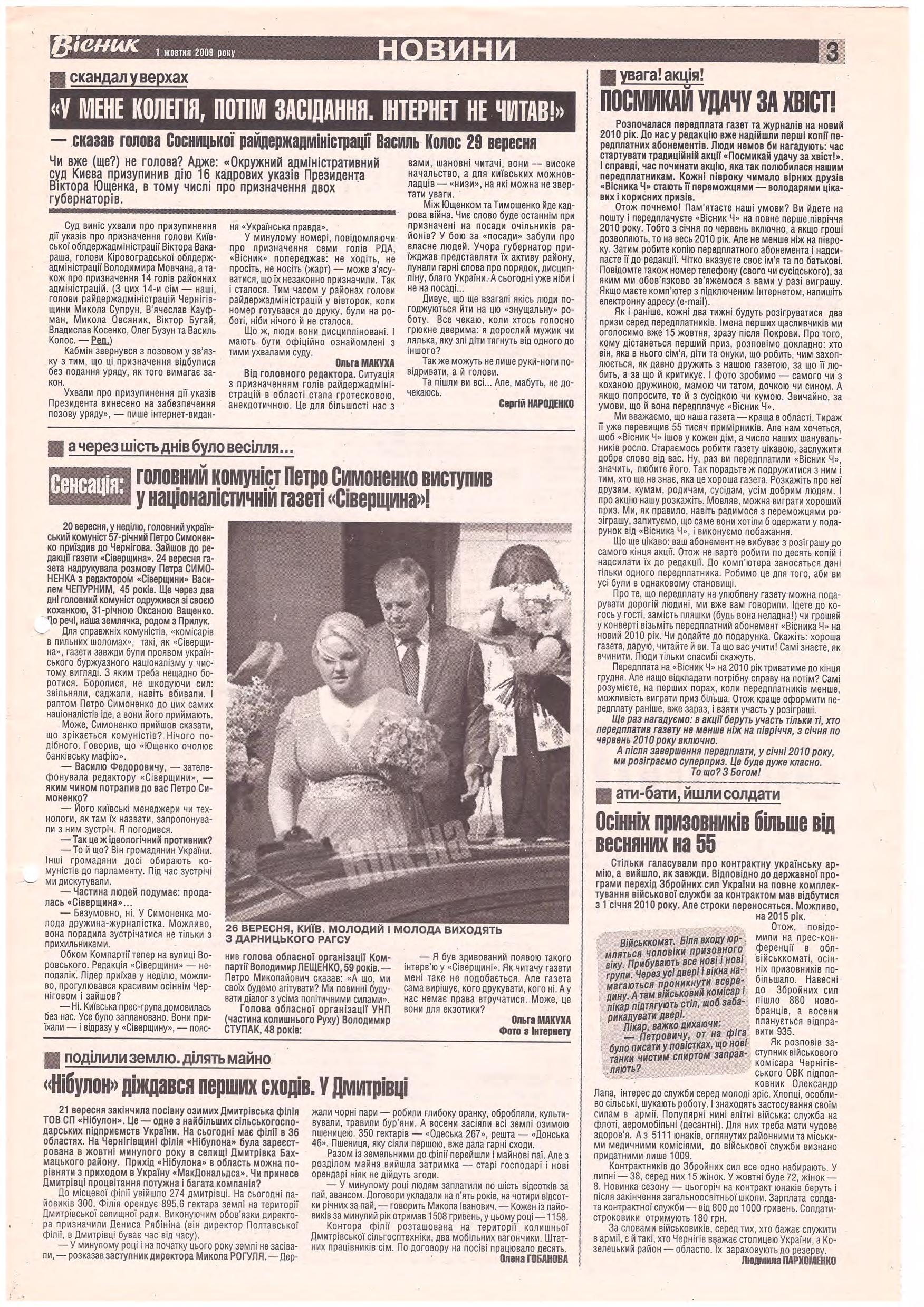 «Вісник Ч», 1 жовтня 2009 року