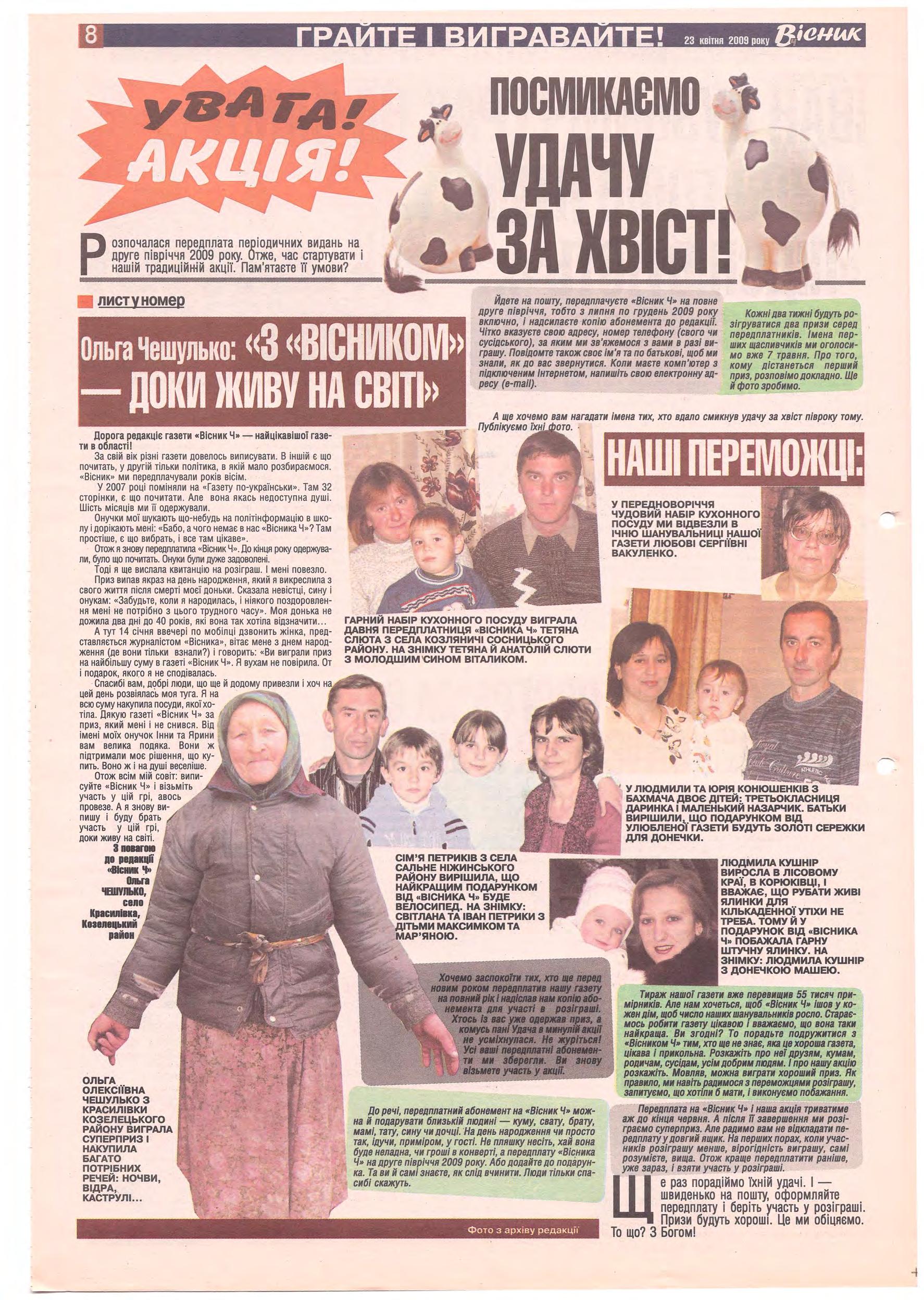 «Вісник Ч», 23 квітня 2009 року