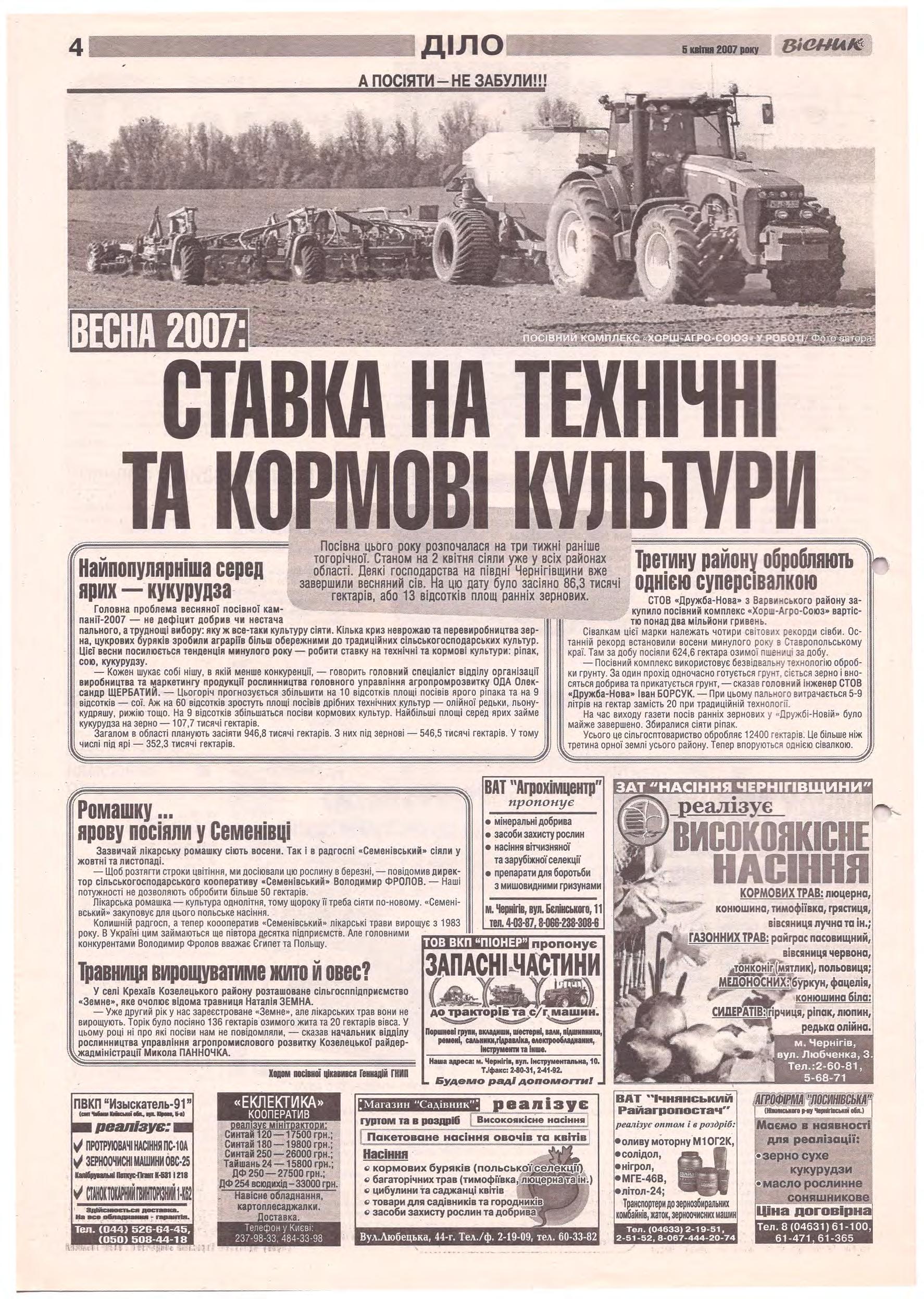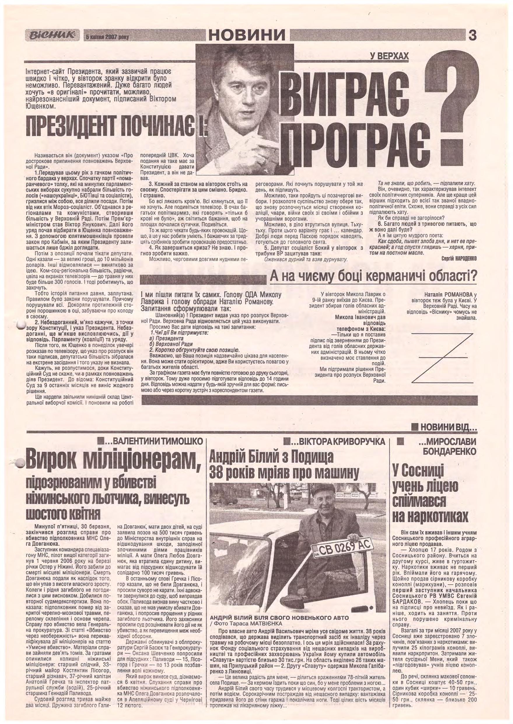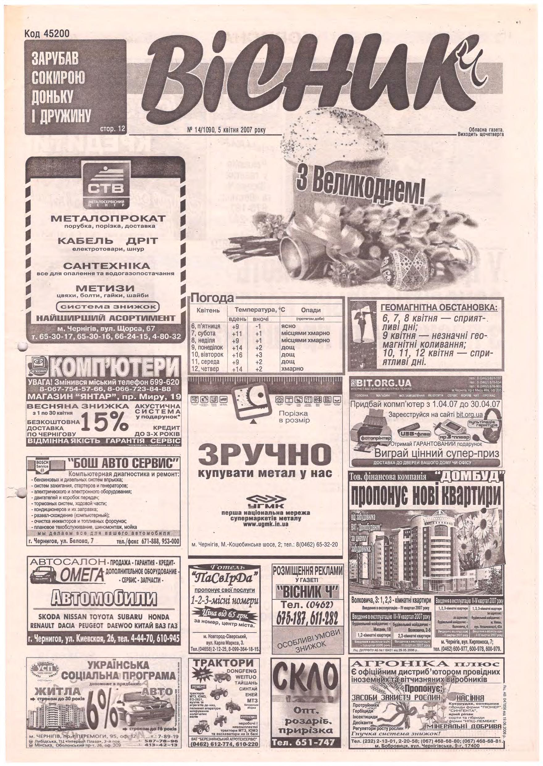 «Вісник Ч», 5 квітня 2007 року