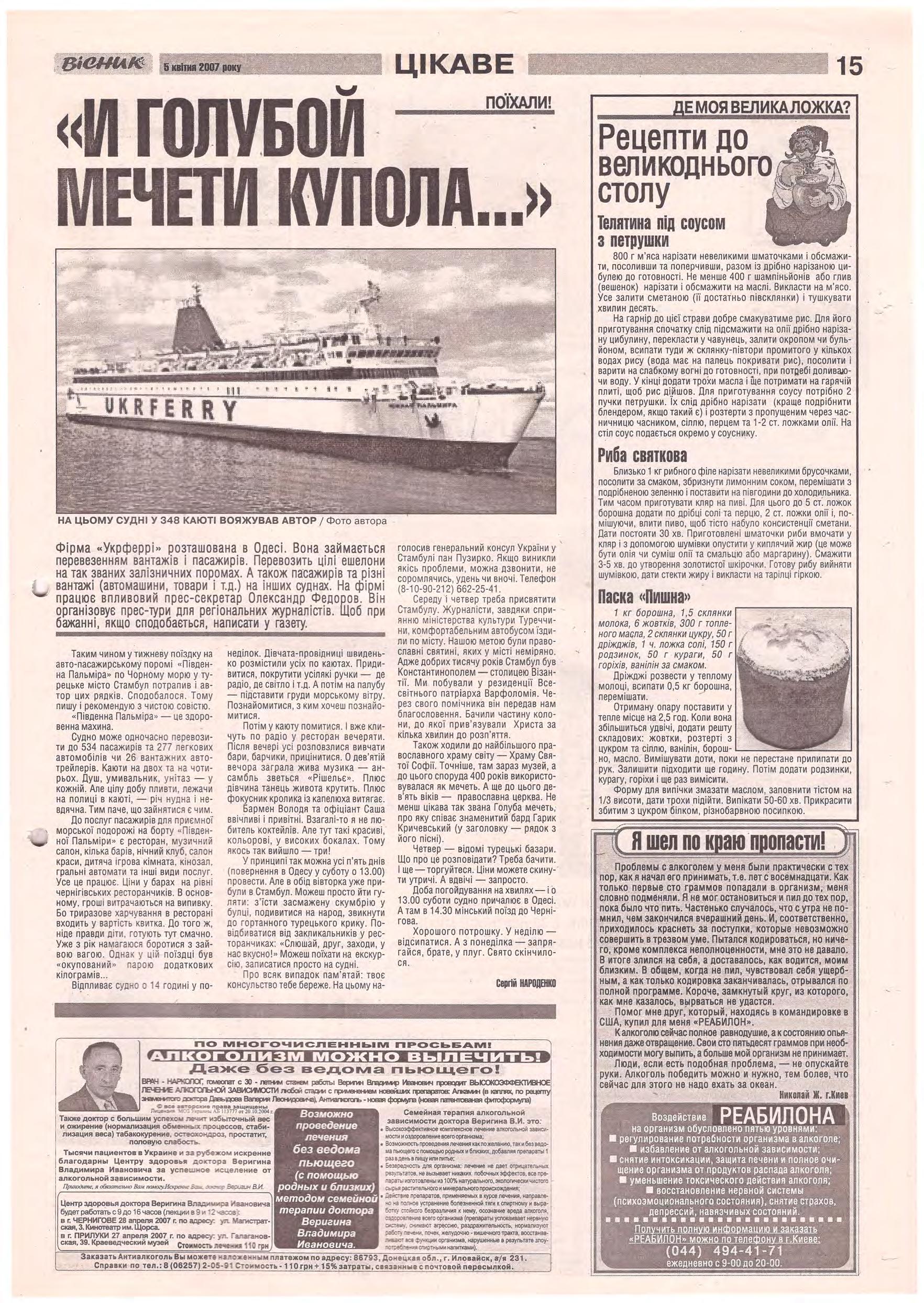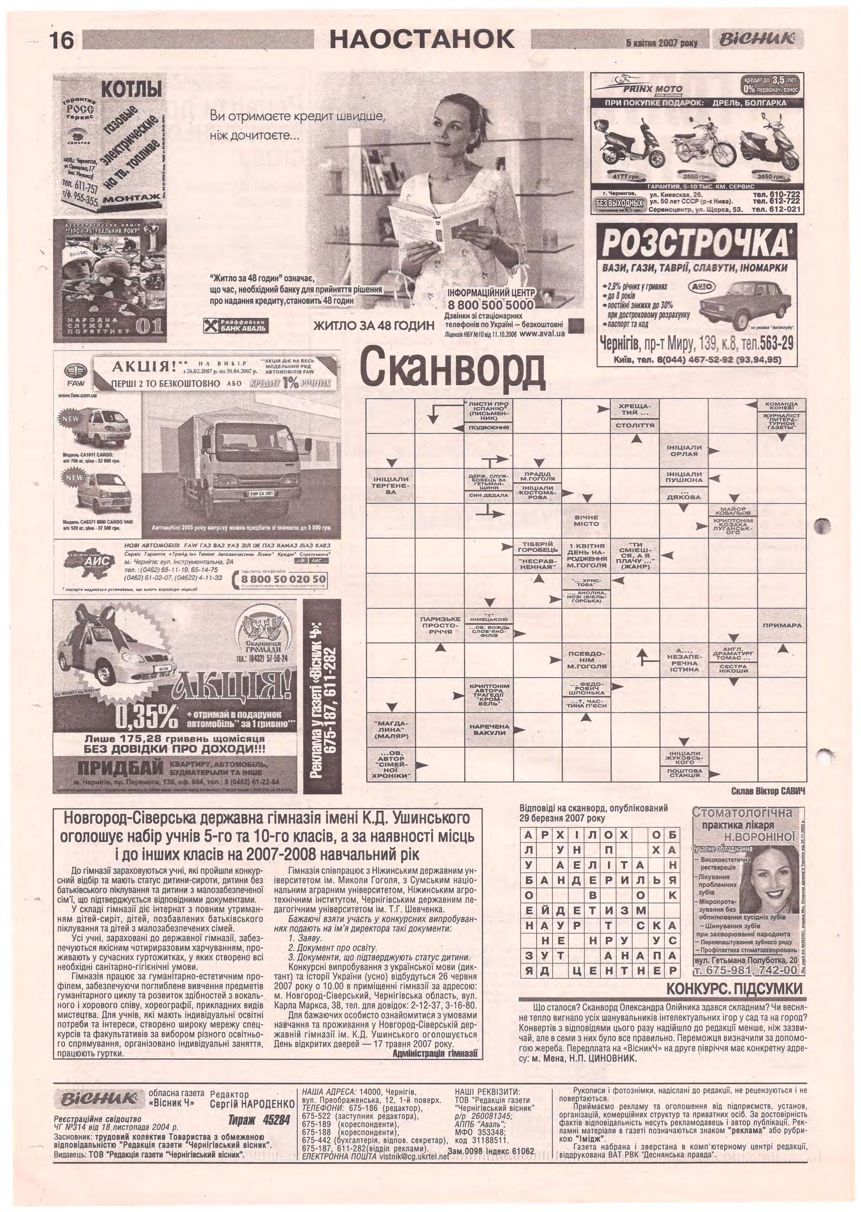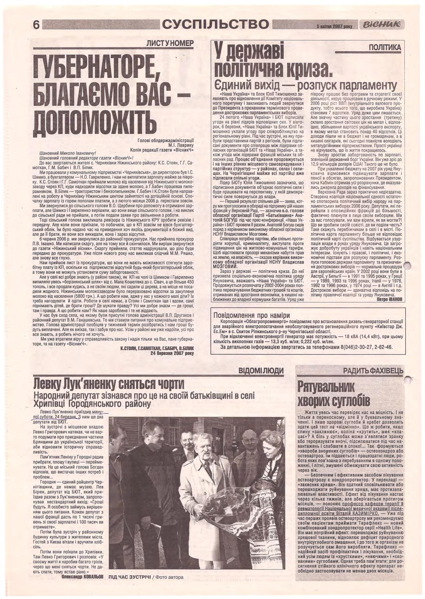 «Вісник Ч», 5 квітня 2007 року