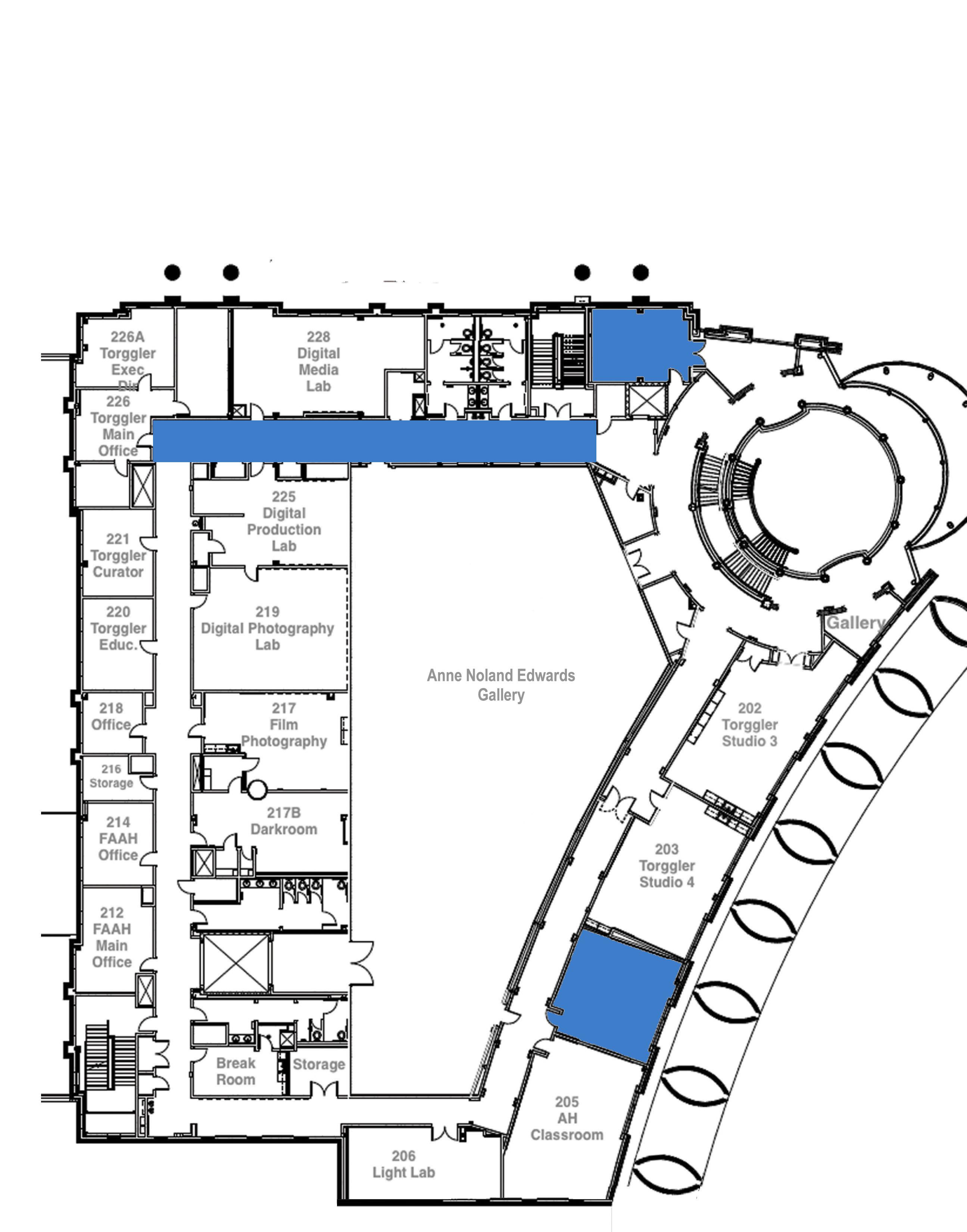 Works on display in Mary M. Torggler Fine Arts Center, William Grace Gallery (first floor), Academic Gallery and North Hall Galleries (second floor)