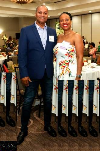Chester Bishop of MortgageGrants com poses for the camera with Mistress of Ceremonies, Kerriann Peart at the JWOF Empowerment Conference and Scholarship Fund which was held in Parkland recently (Photo: David Muir)