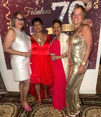 South Florida group: Nadine, Peaches, Carol and Magali at the Gold Coast Ballroom in Coconut Creek during a recent 70th birthday celebra on