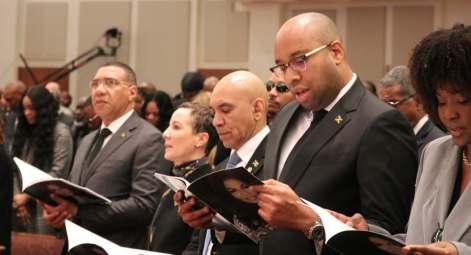 Musician Gramps Morgan delivers a moving musical tribute during the celebra on of life service for late Consul General Alsion Roach Wilson in New Jersey on December 5th. Photo: Derrick Sco Allan