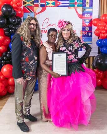 Consul General Oliver Mair seem to be overcome with emo ons as he was presented with several awards by County Commissioner, Hazelle Rogers. Also on hand to help congratulate him is City of Lauderdale Lakes Commissioner, Tycie Causwell. – Luke Ballen ne photo