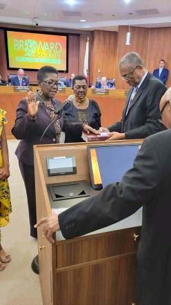Hazelle Rogers (le ) being sworn in as Commissioner of Broward County. –Contributed