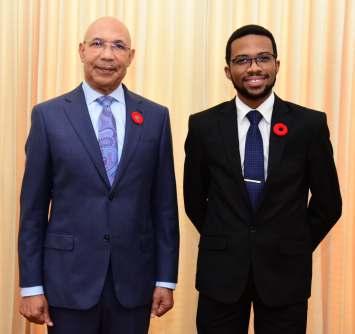 David Salmon (right), Jamaicas 2023 Rhodes Scholar, poses with Governor General, Sir Patrick Allen (le ) at the announcement ceremony held recently at Kings House. (Photo: Adrian Walker)