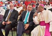 (L-R) Leader of the Opposition, Mark Golding, Prime M nister Andrew Holness and Archbishop of K ngston, Roman Catho ic Church, Kenneth Richards (Photo credit: Donald De La Haye/ JIS)